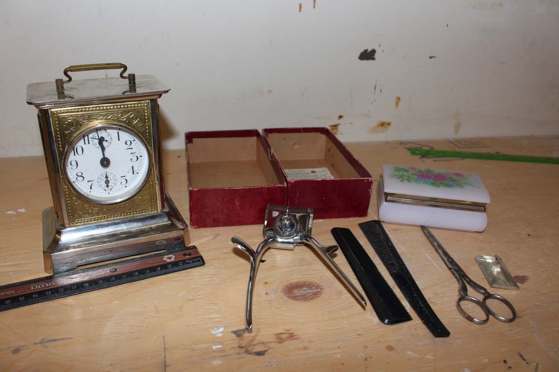 Antique Clock, Case & Clipper Set