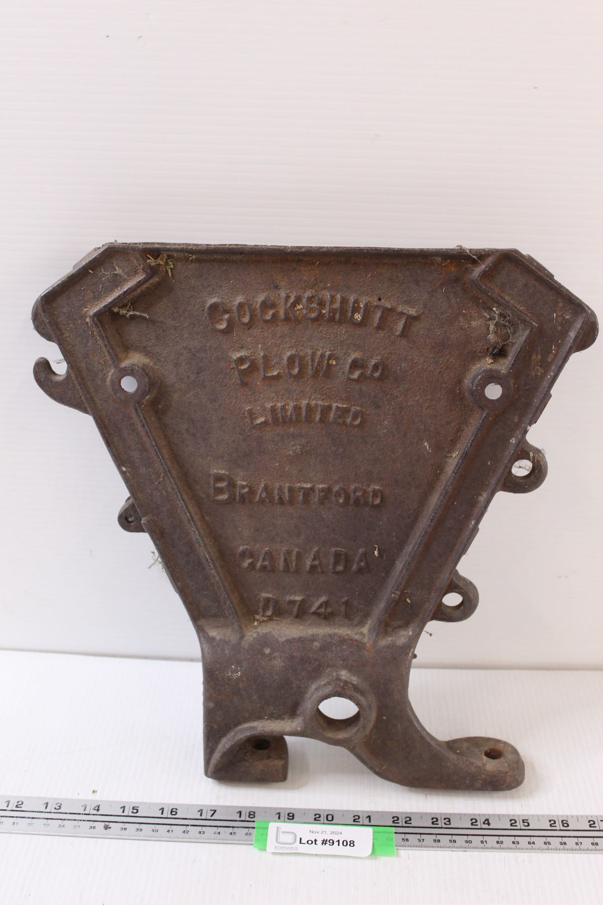 Antique Cockshutt Plow Co. Cast Iron Seed Drill End - 14" x 14"