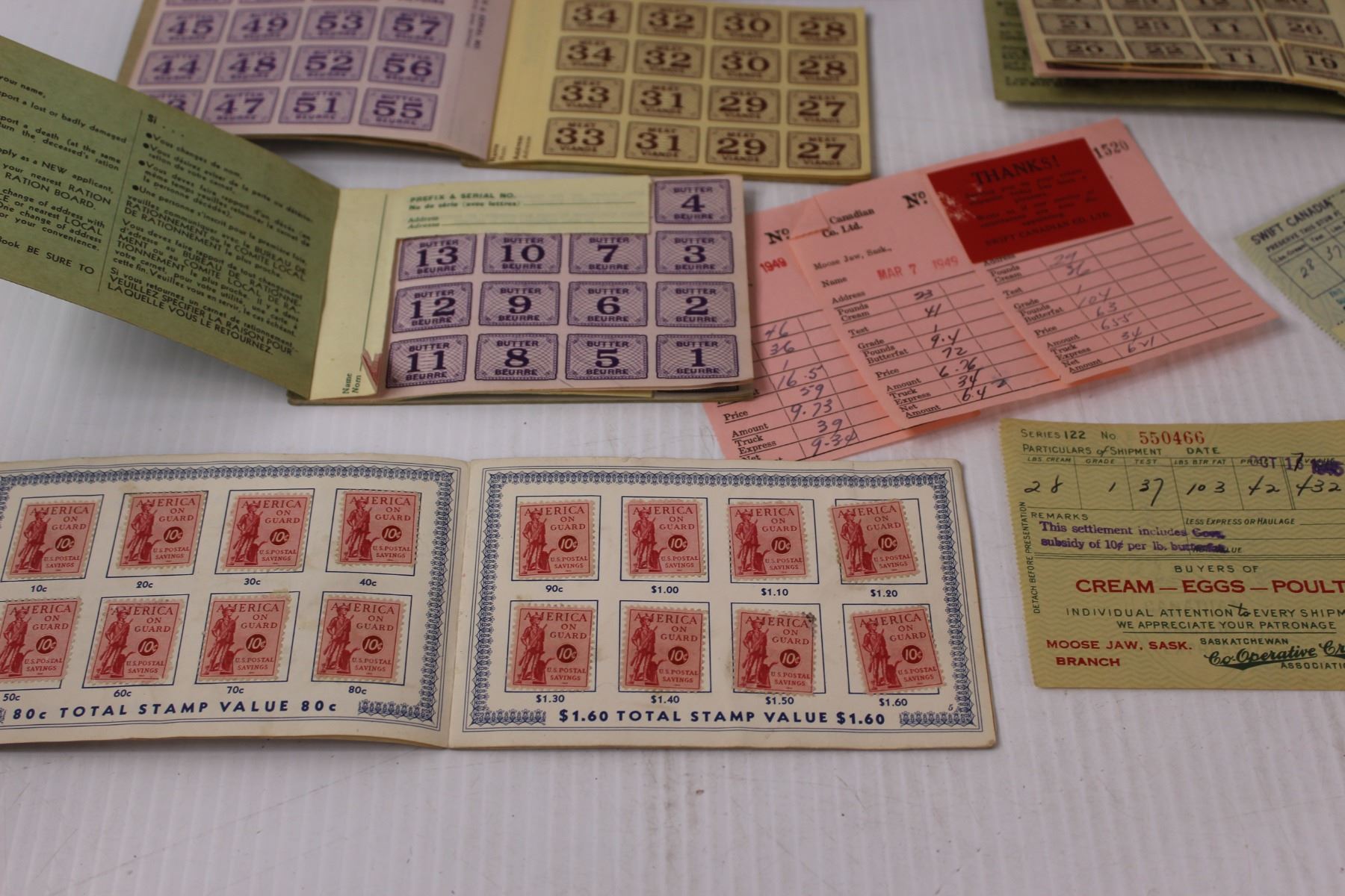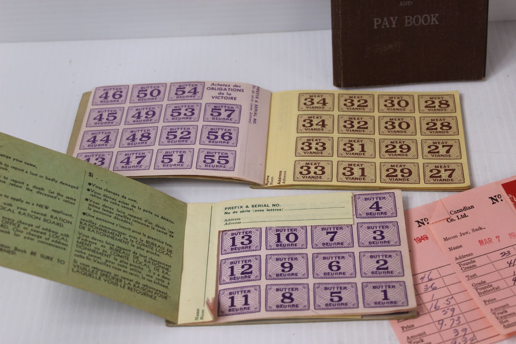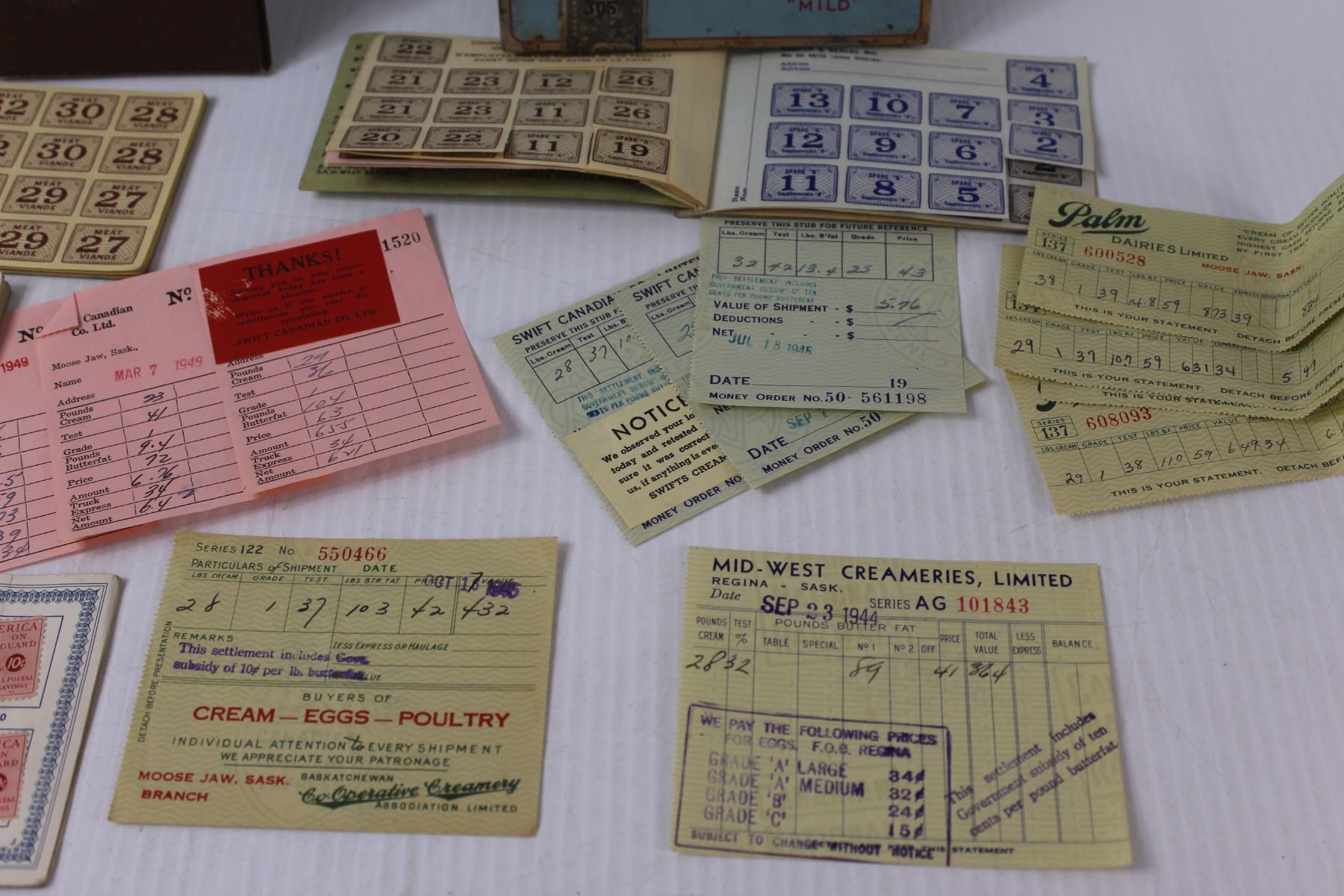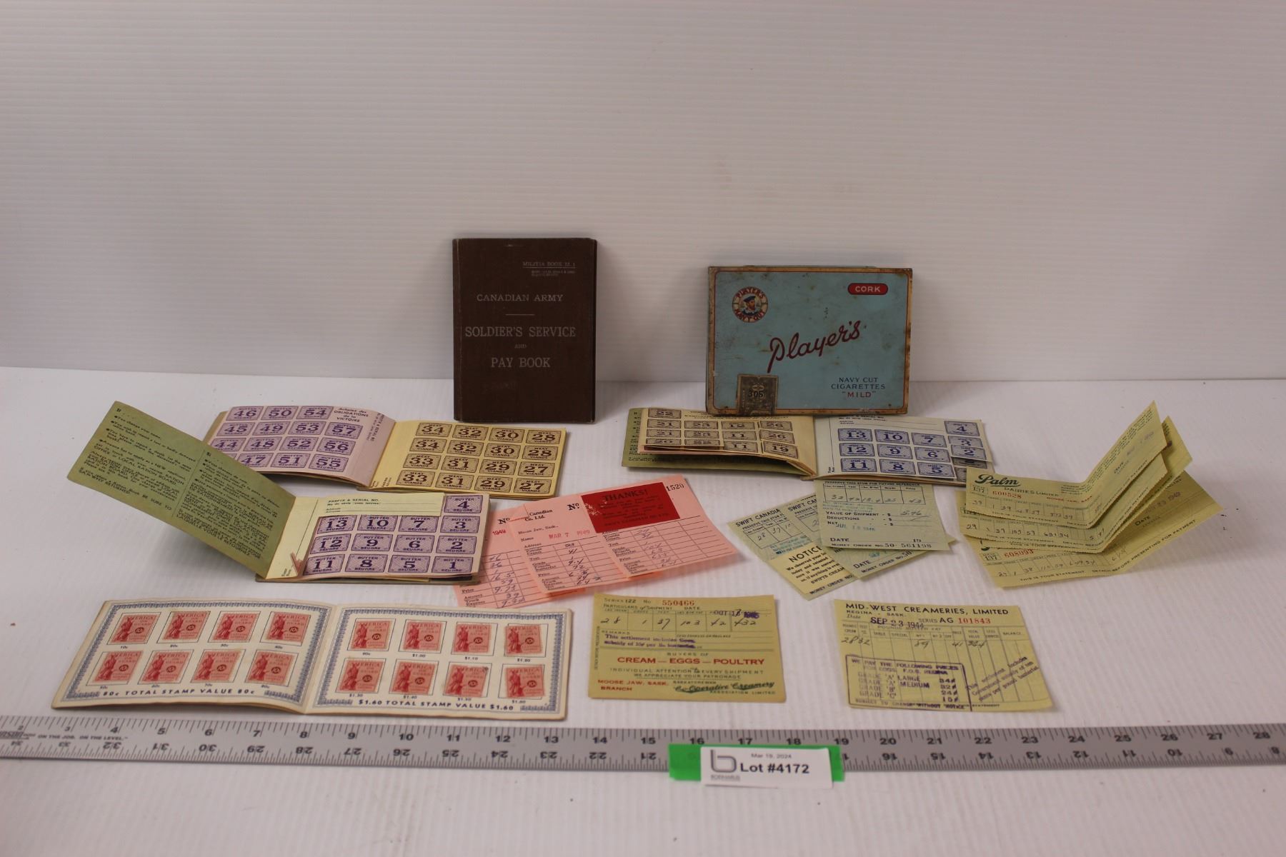 Antique Food Stamps, Army Paybook, Players Tin, Dairy Receipts from 1940's