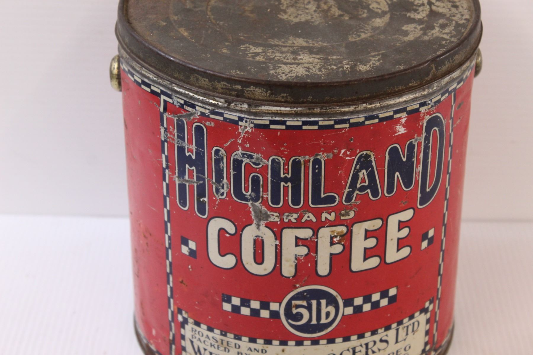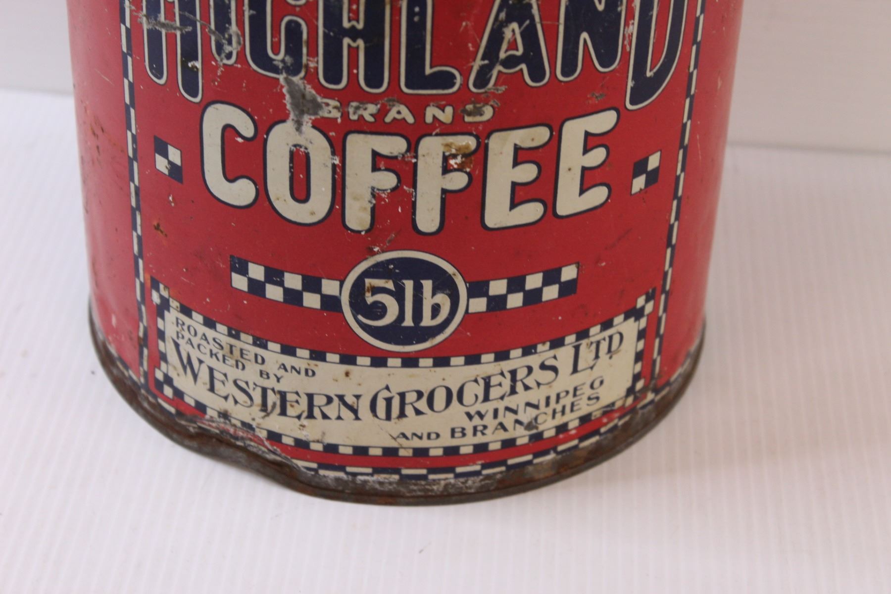 Antique Highland Brand Coffee Tin - 9" x 8"