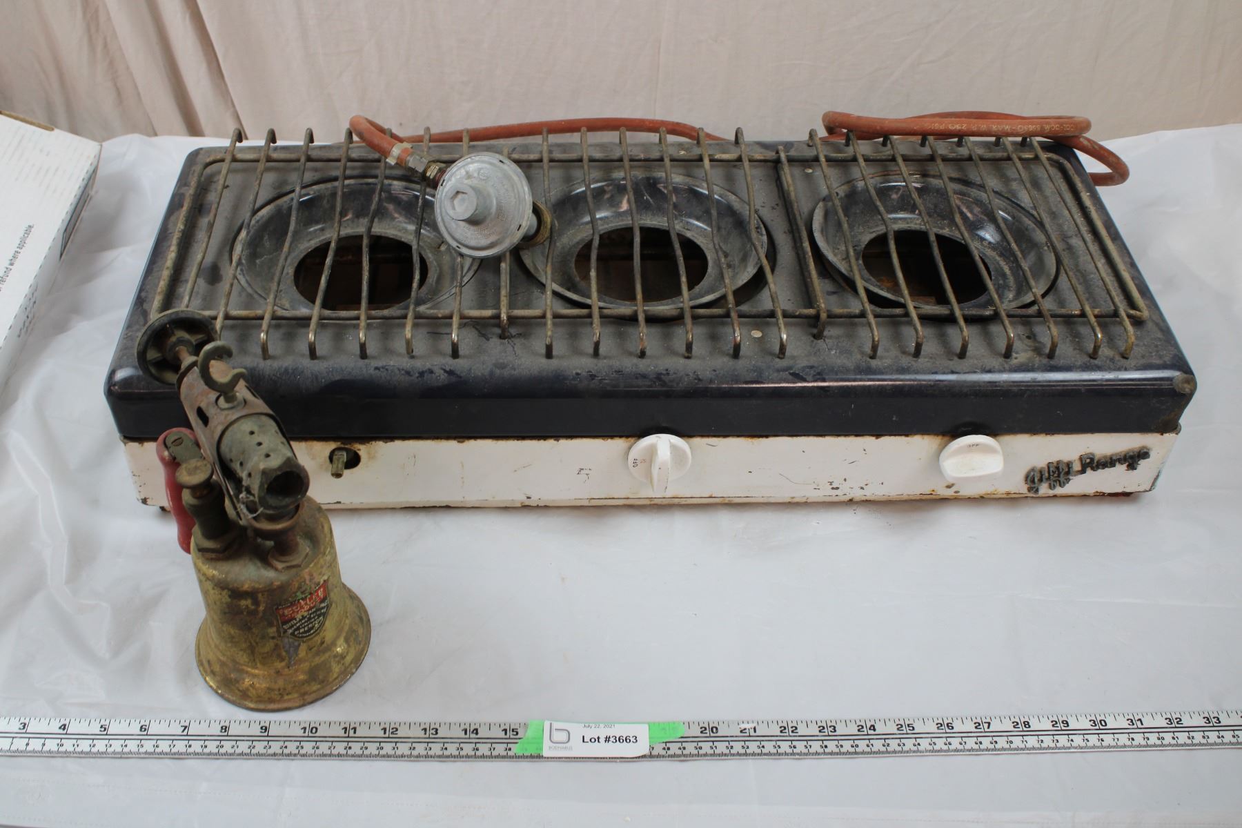 Antique Jiff-Range 33A Propane 3-burner stove + Butler Brass Hand Torch