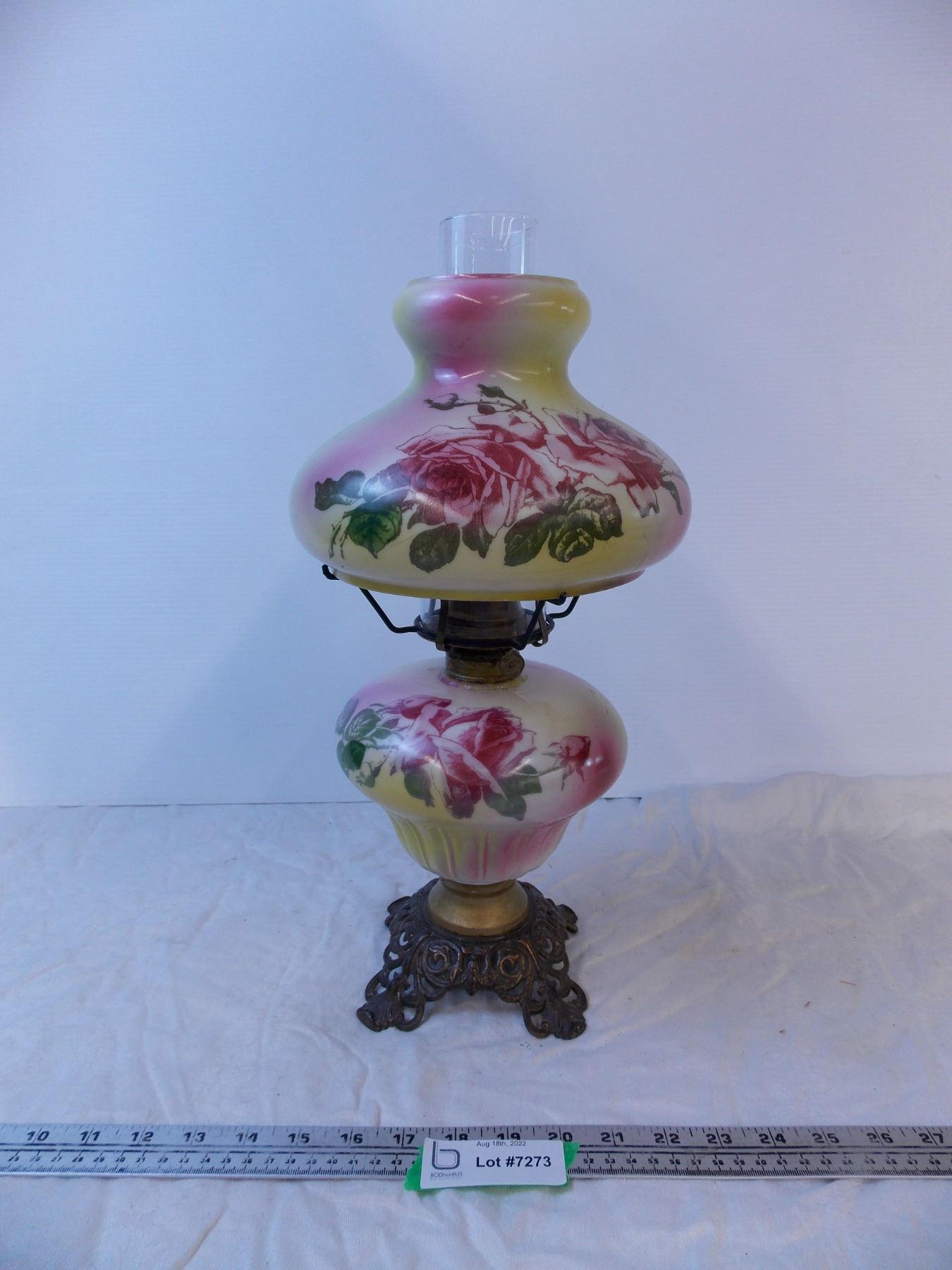 Antique Kerosene Banquet Lamp w/ Chimney and Shade