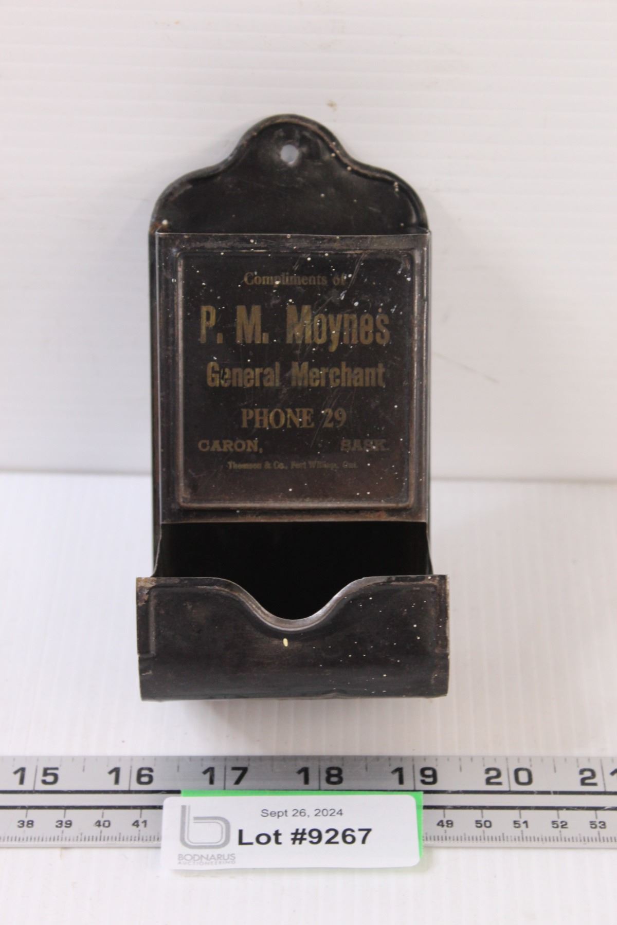Antique Matchbox Holder - From Caron, Saskatchewan - Some Wear