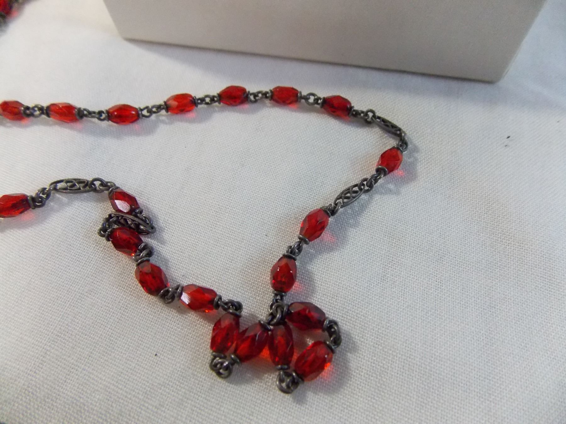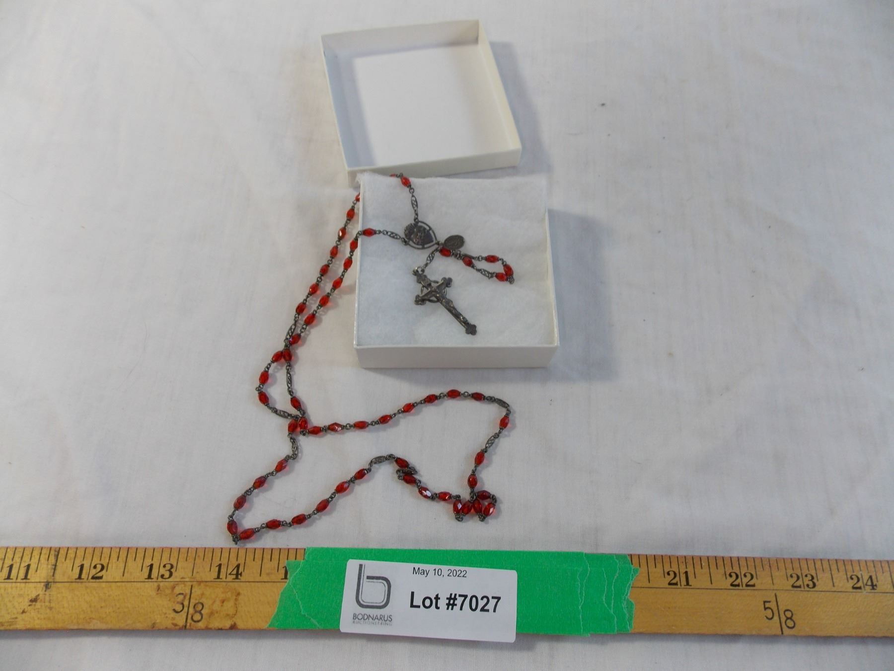 Antique Red Rosary - very old - silver chain? Chapelet Floria?