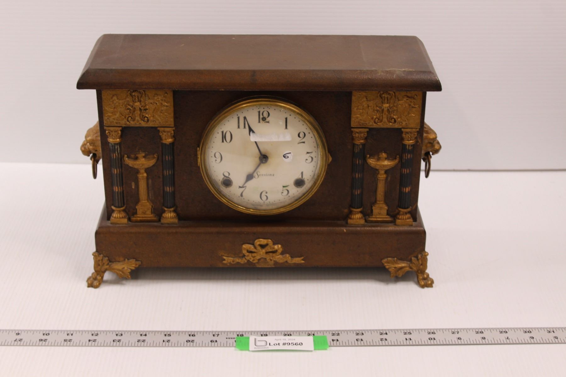 Antique Sessions Ornate Mantle Clock - Missing Key and Back Foot