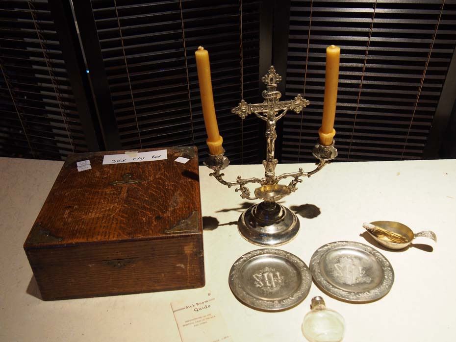 Antique Sick Call Box w/ Instructions holy water clear bottle