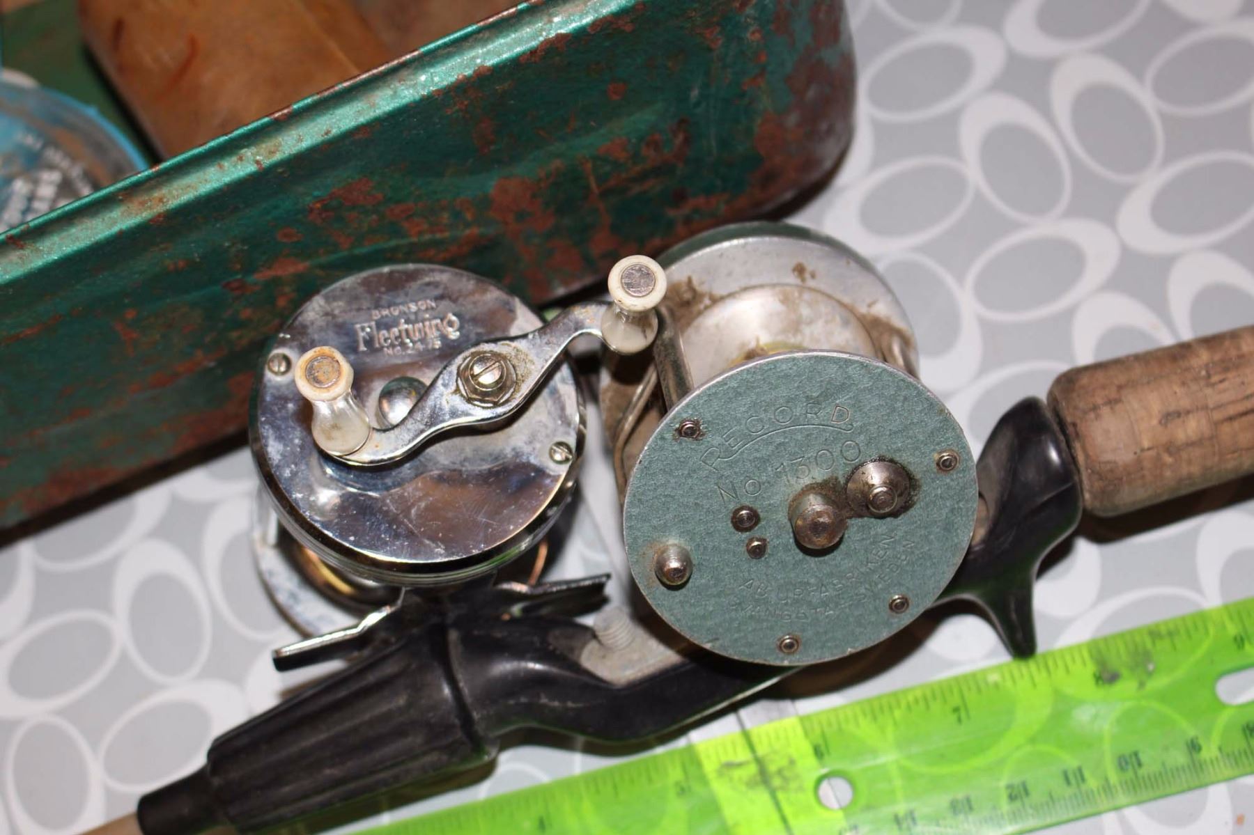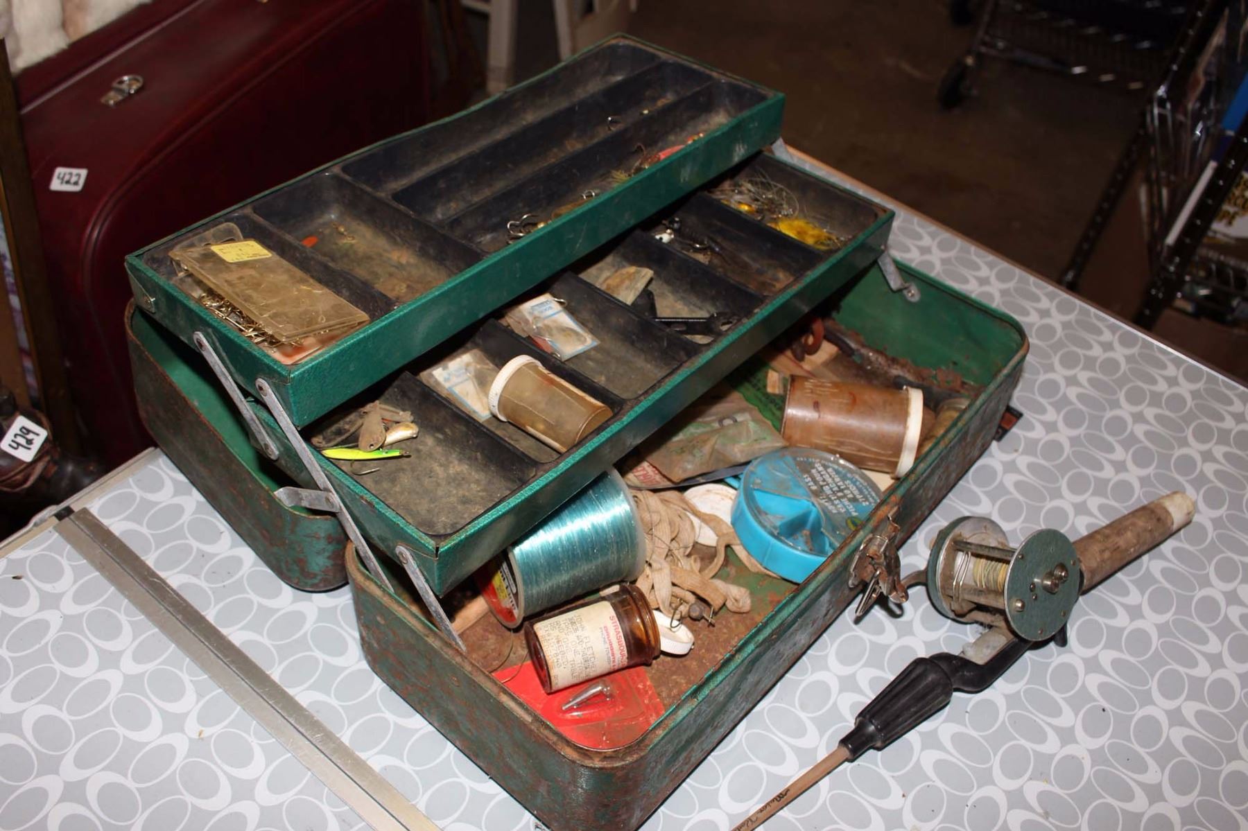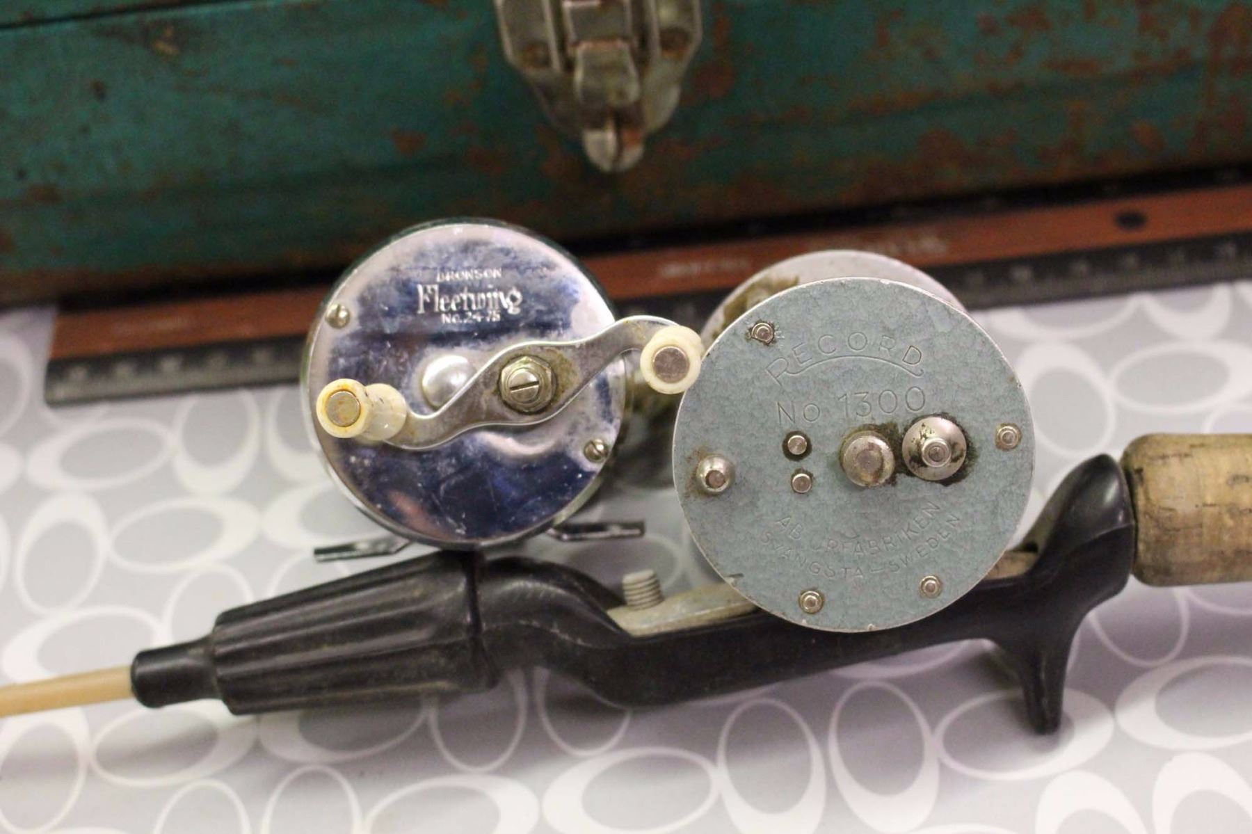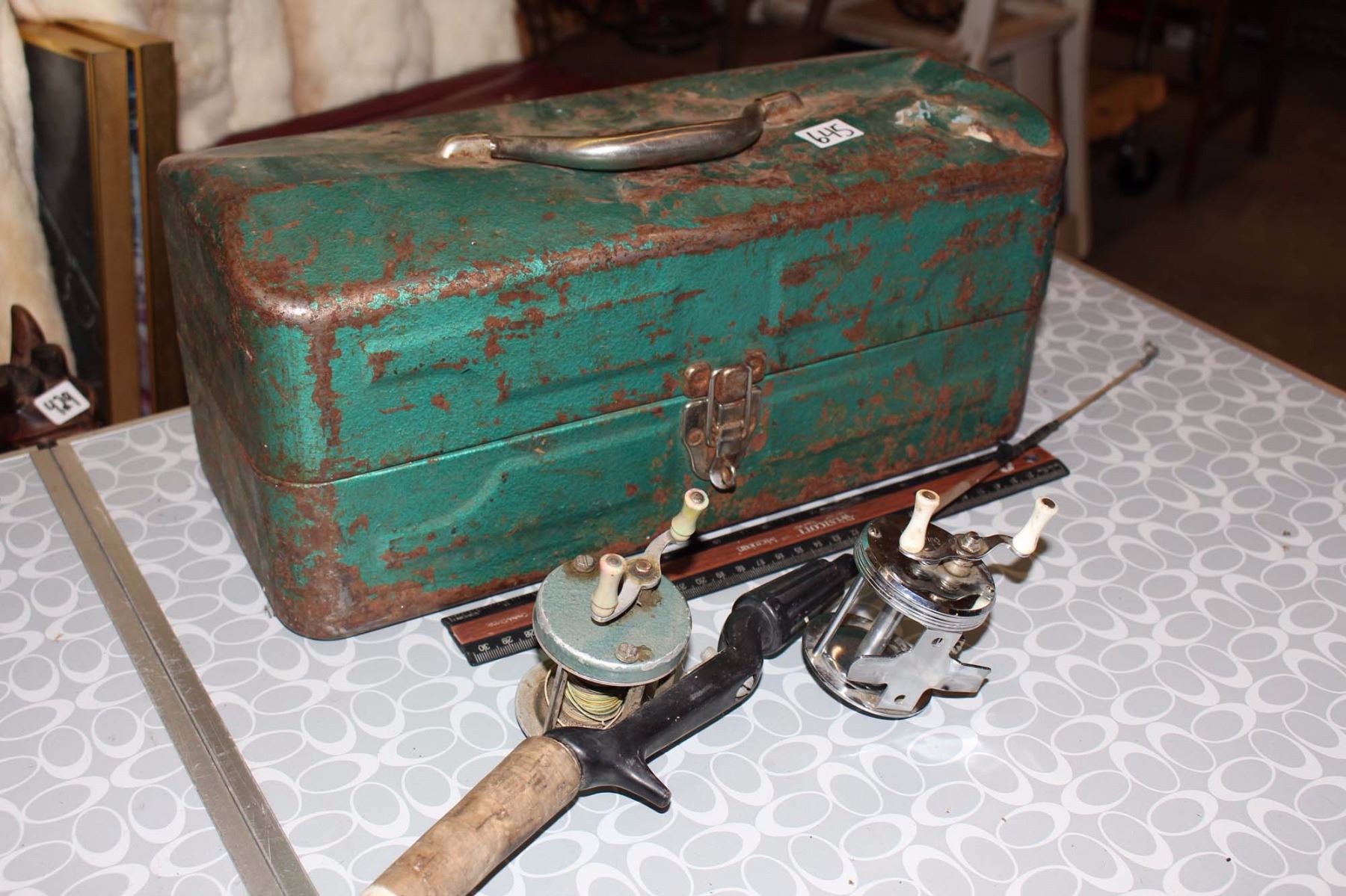 Antique Tackle Box, Rod & Antique Reels (2)