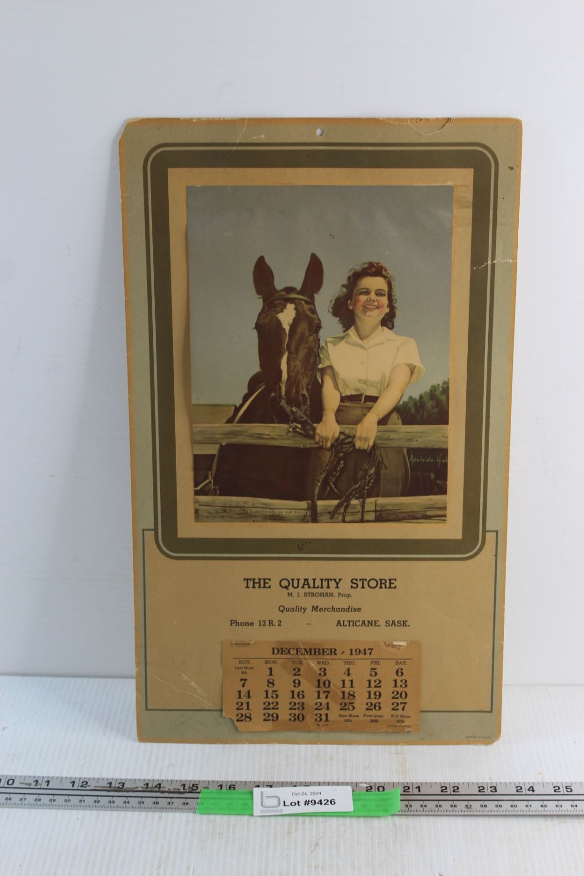 Antique The Quality Store 1947 Calendar - Alticane Sask