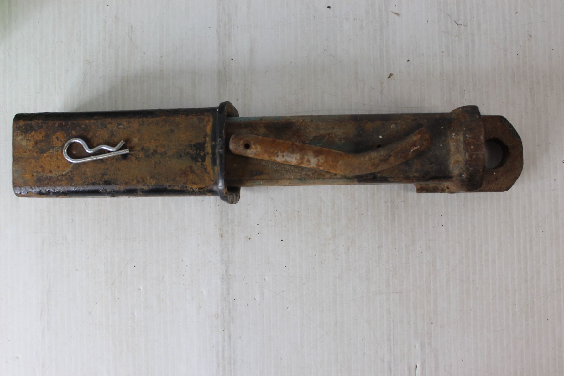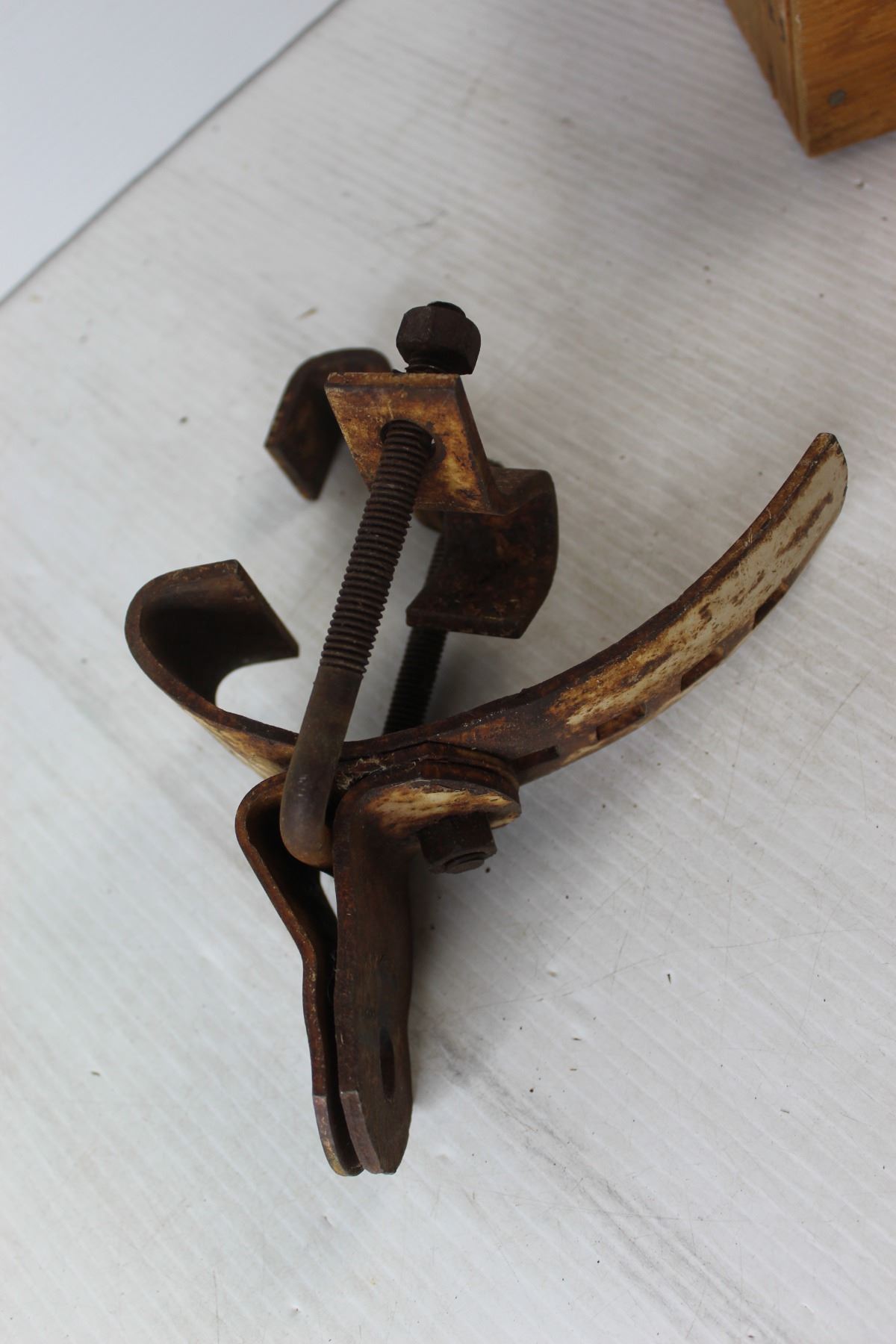 Antique Trailer Hitch, Receiver, 10" Saw Blade, Concrete Nails, Pulley, Wooden Box, Evaporator Coil