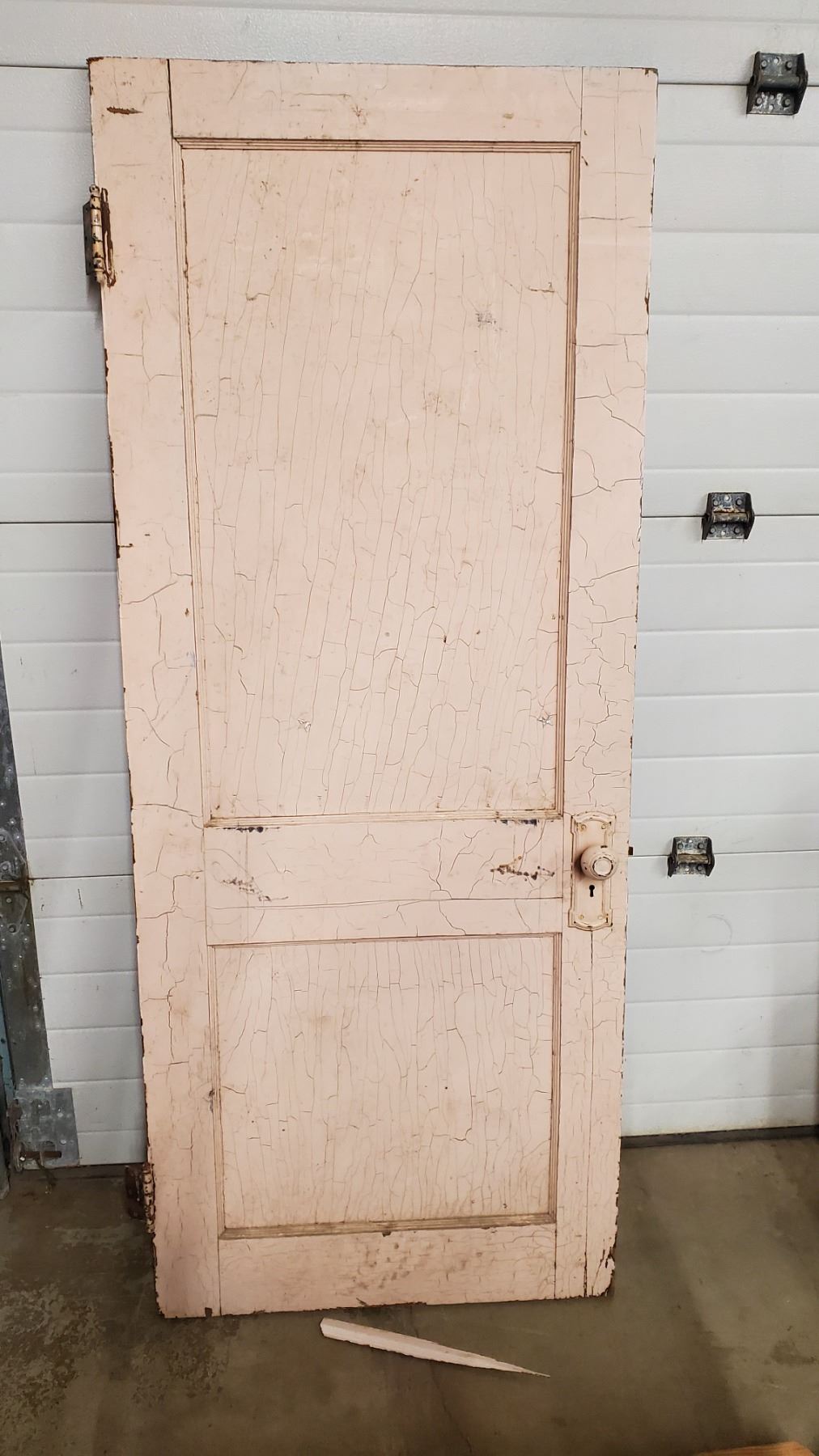 Antique Wooden Door - 30" x 74" - 1.3" thick (chipped near bottom, broken off piece needs repair)