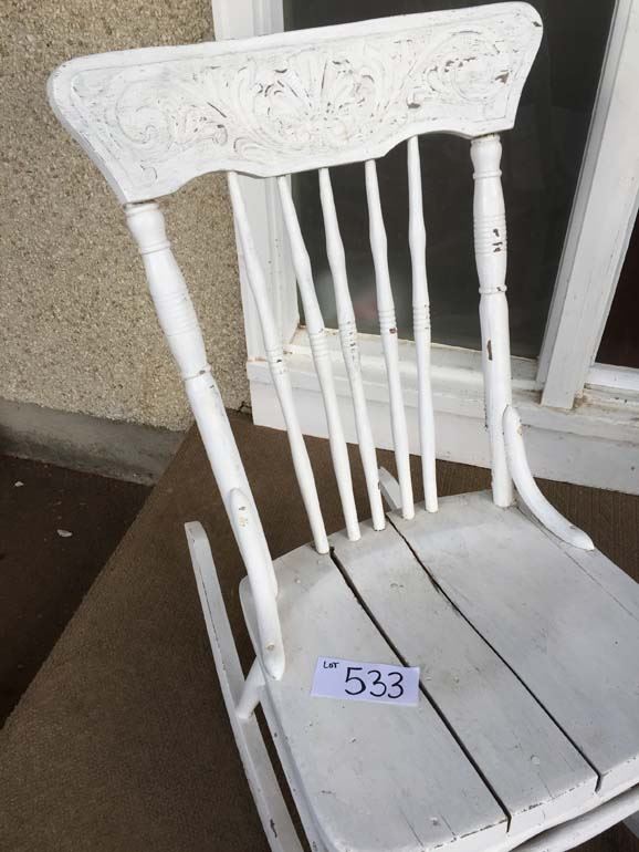 white distressed wood rocking chair