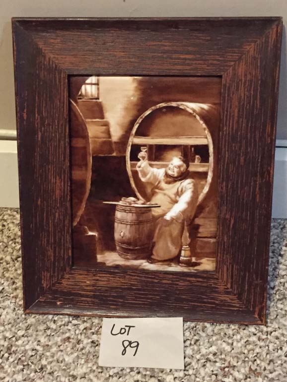 Ceramic from England of Old Woman Toasting , Picure of Dover on wood Back