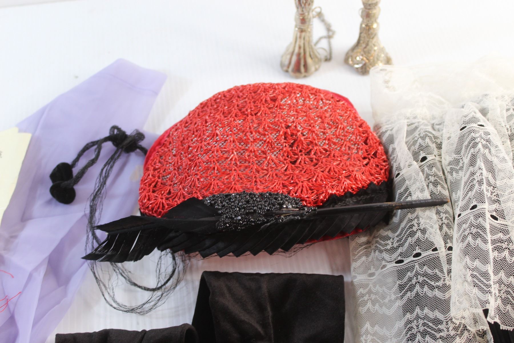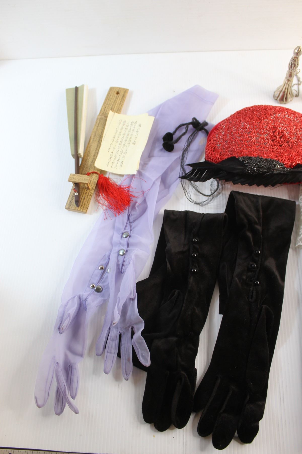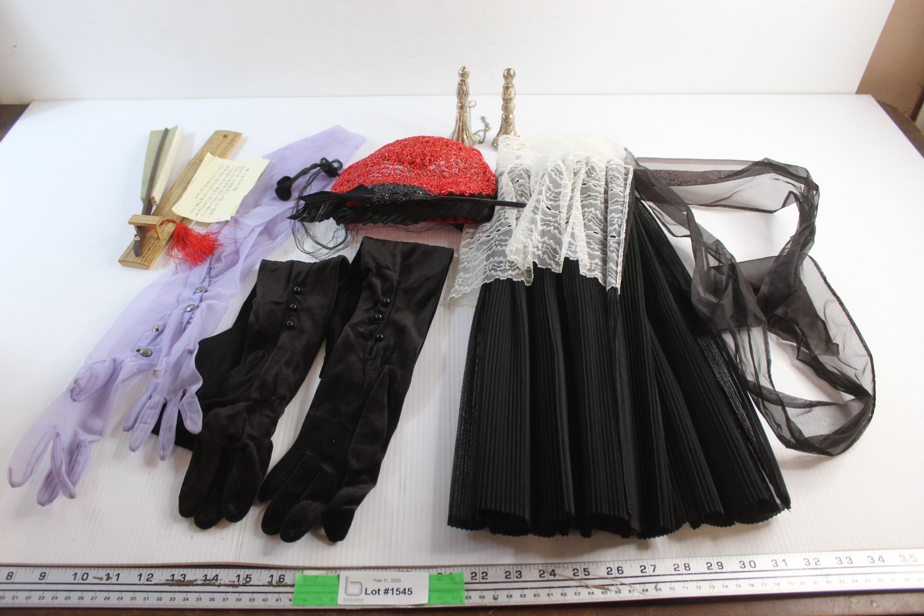 Apron. Hand Fan, Ladies Gloves, Vintage Ladies Hat and Misc.