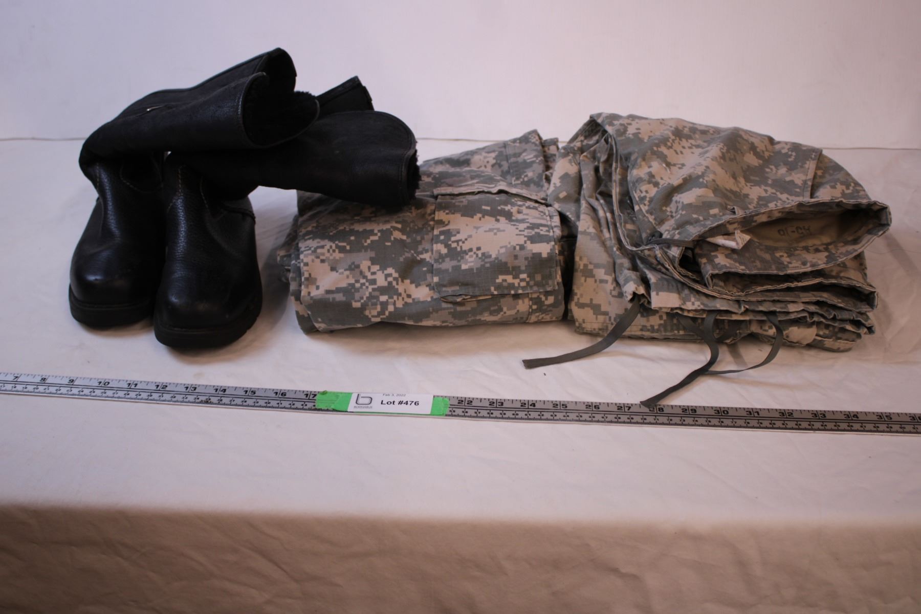 Army Pants Size S, Black Boots Size 7.5