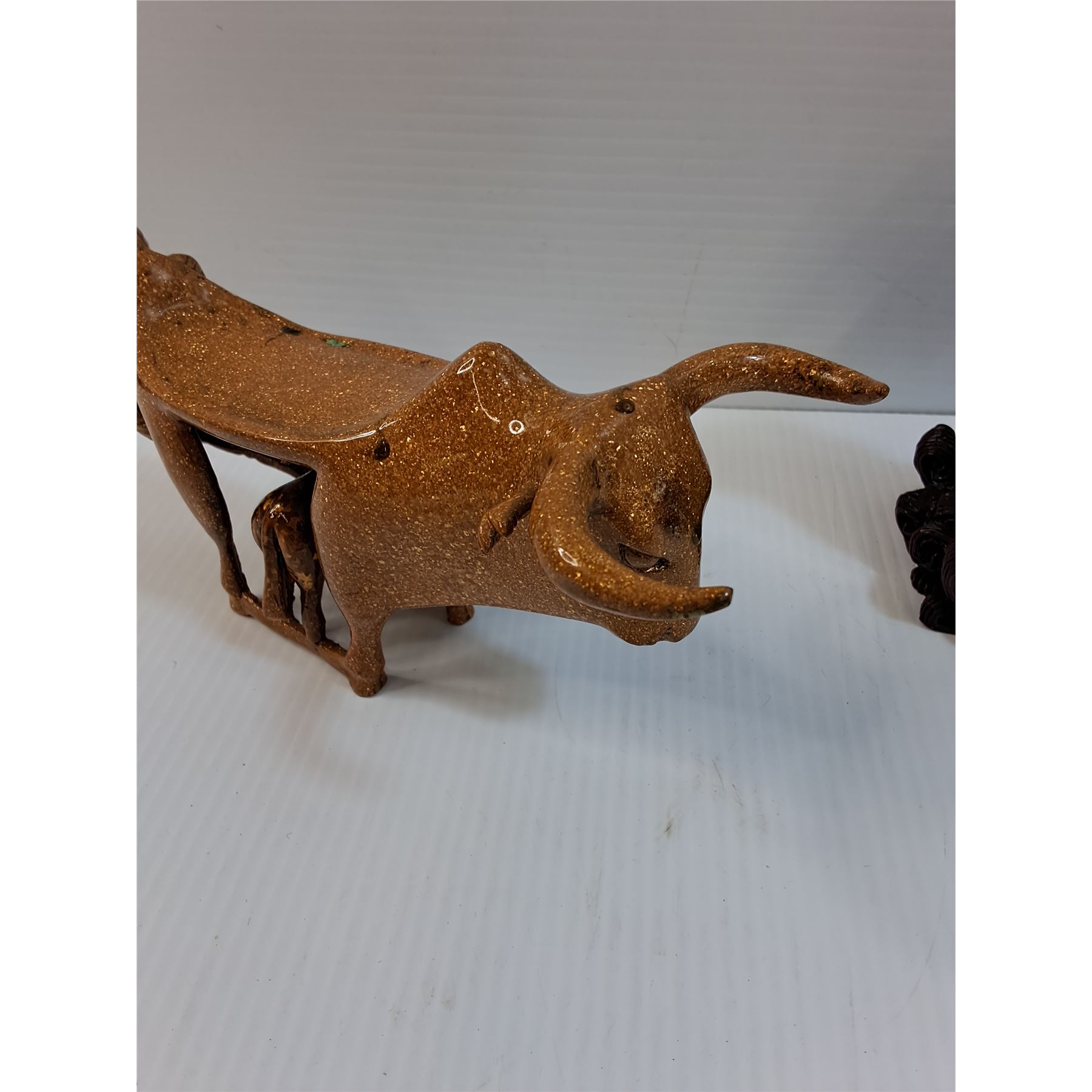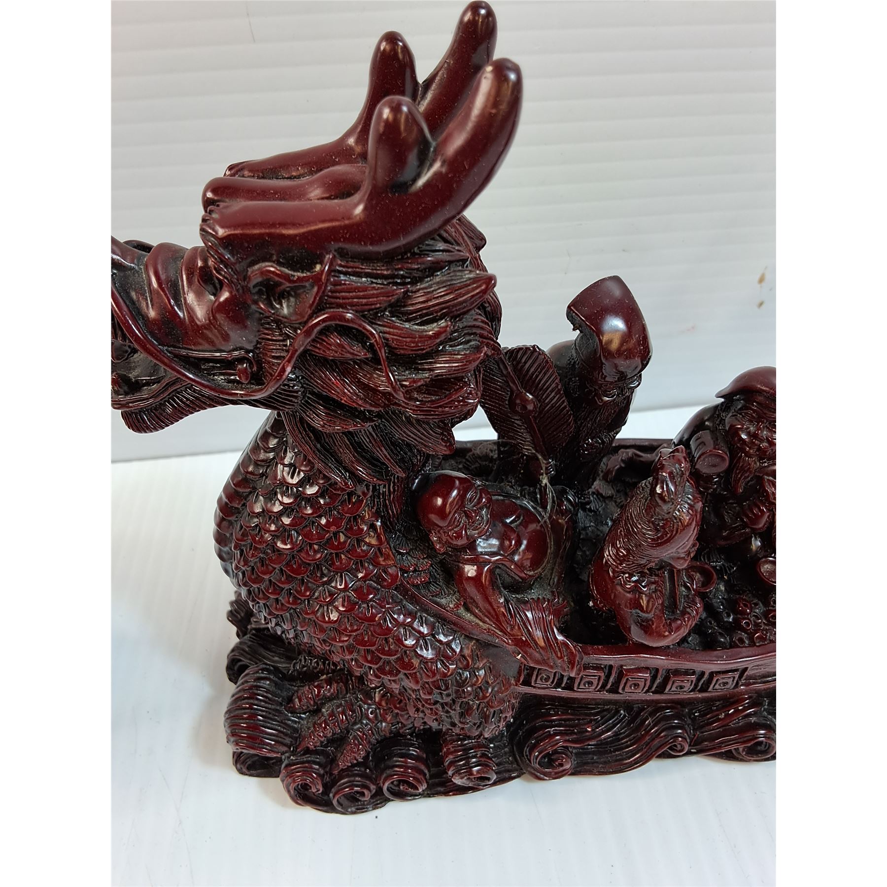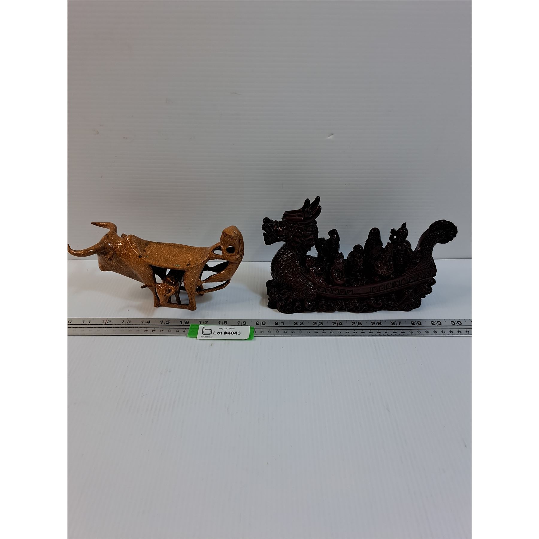 Asian Dragon Boat Figurine - 9  x 5.5  & Bull Worship Figurine - 9  x 4