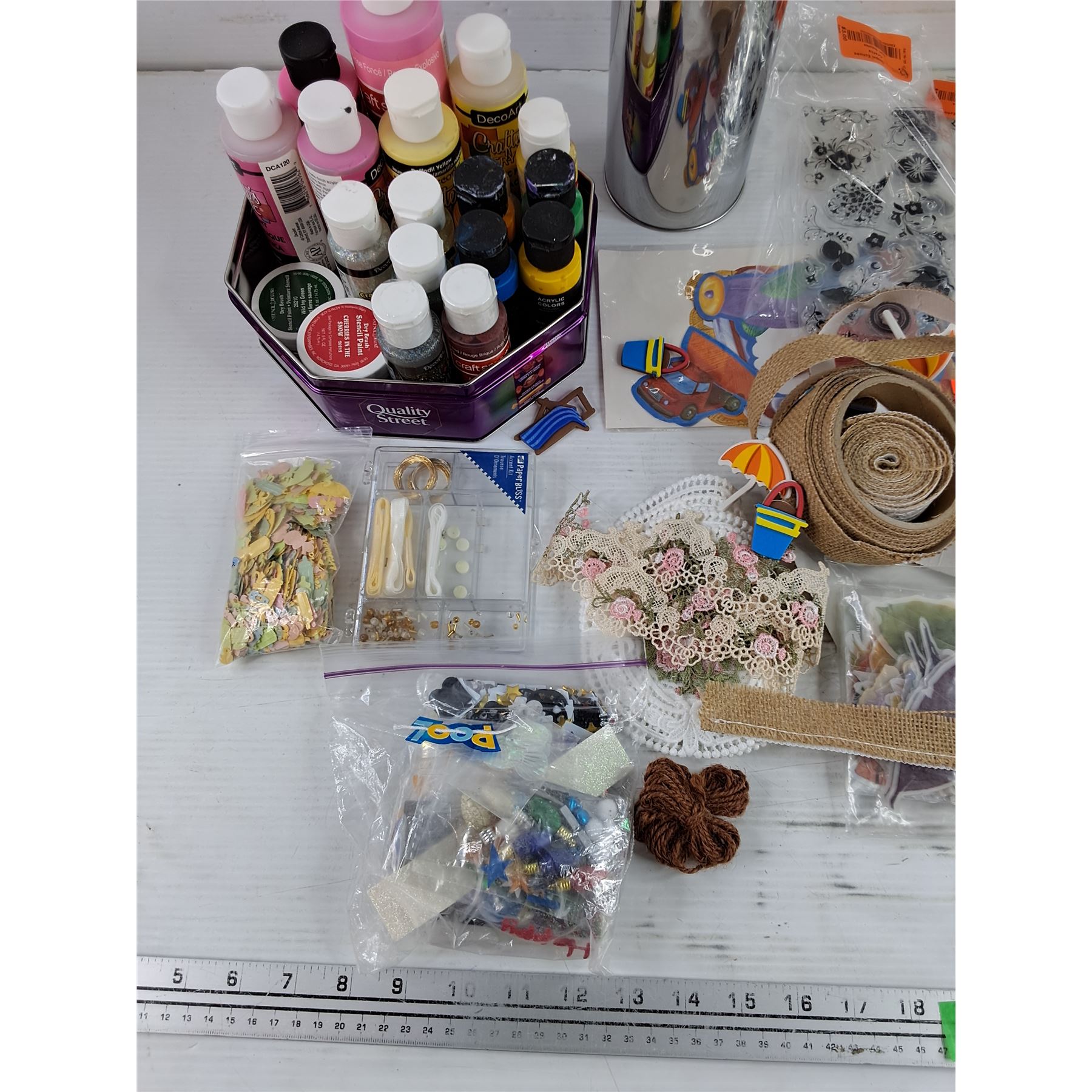 Assorted Acrylic Paint, Collage Papers, Doilies, Stickers, Misc