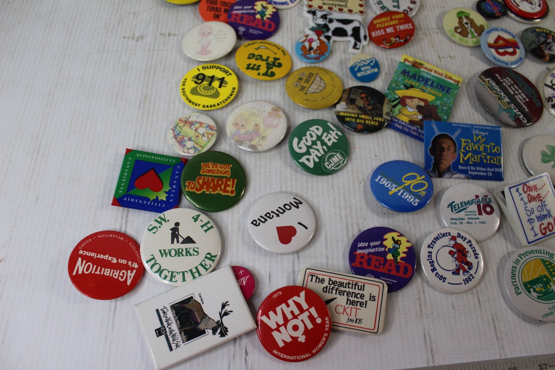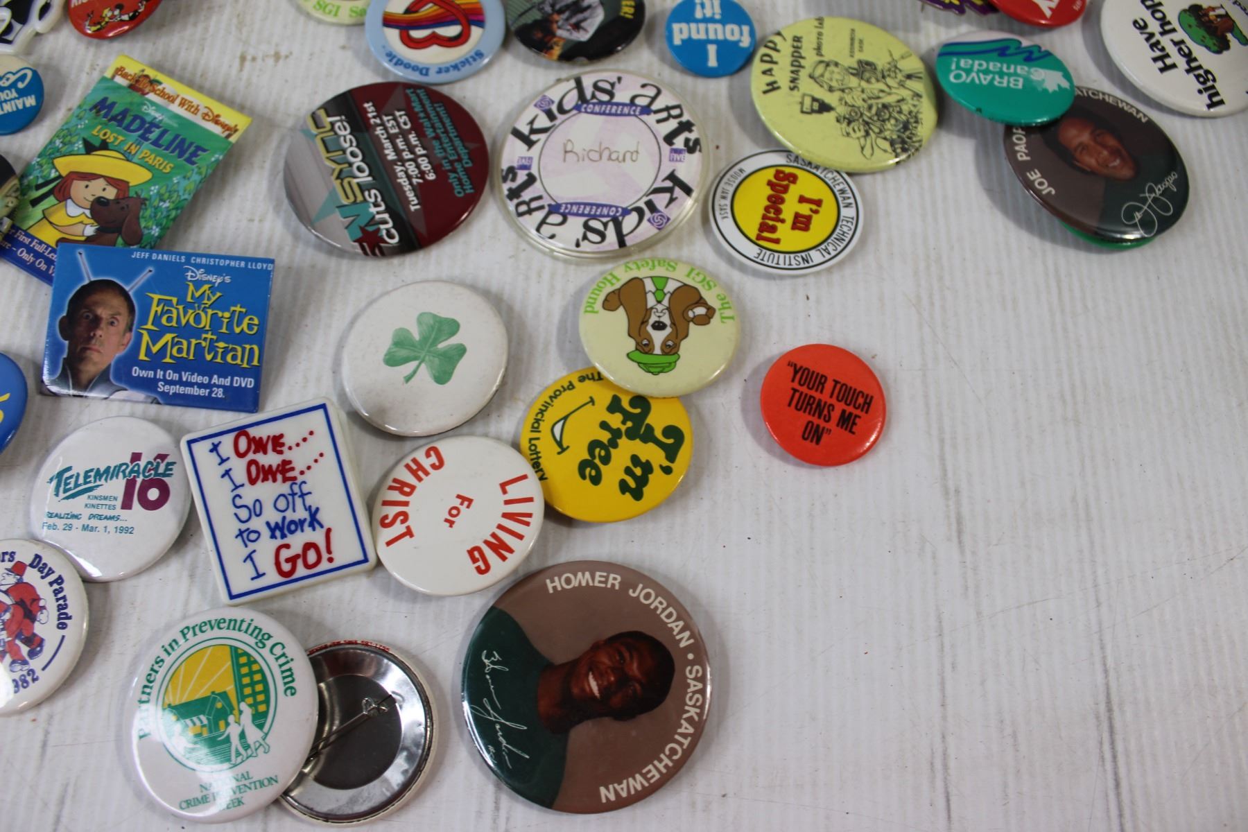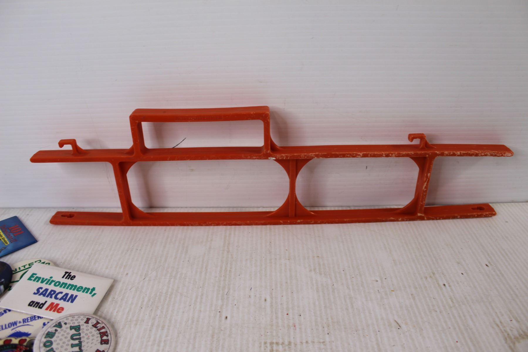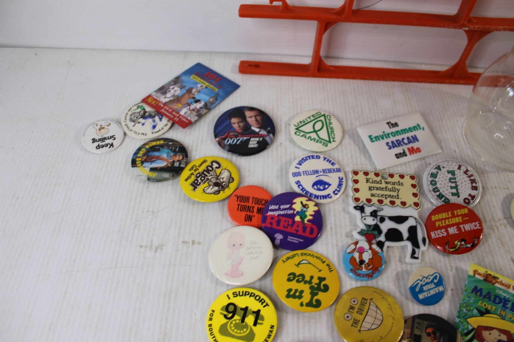 Assorted Button Pins, Coleman Lamp Chimneys, Extension Cord Holder