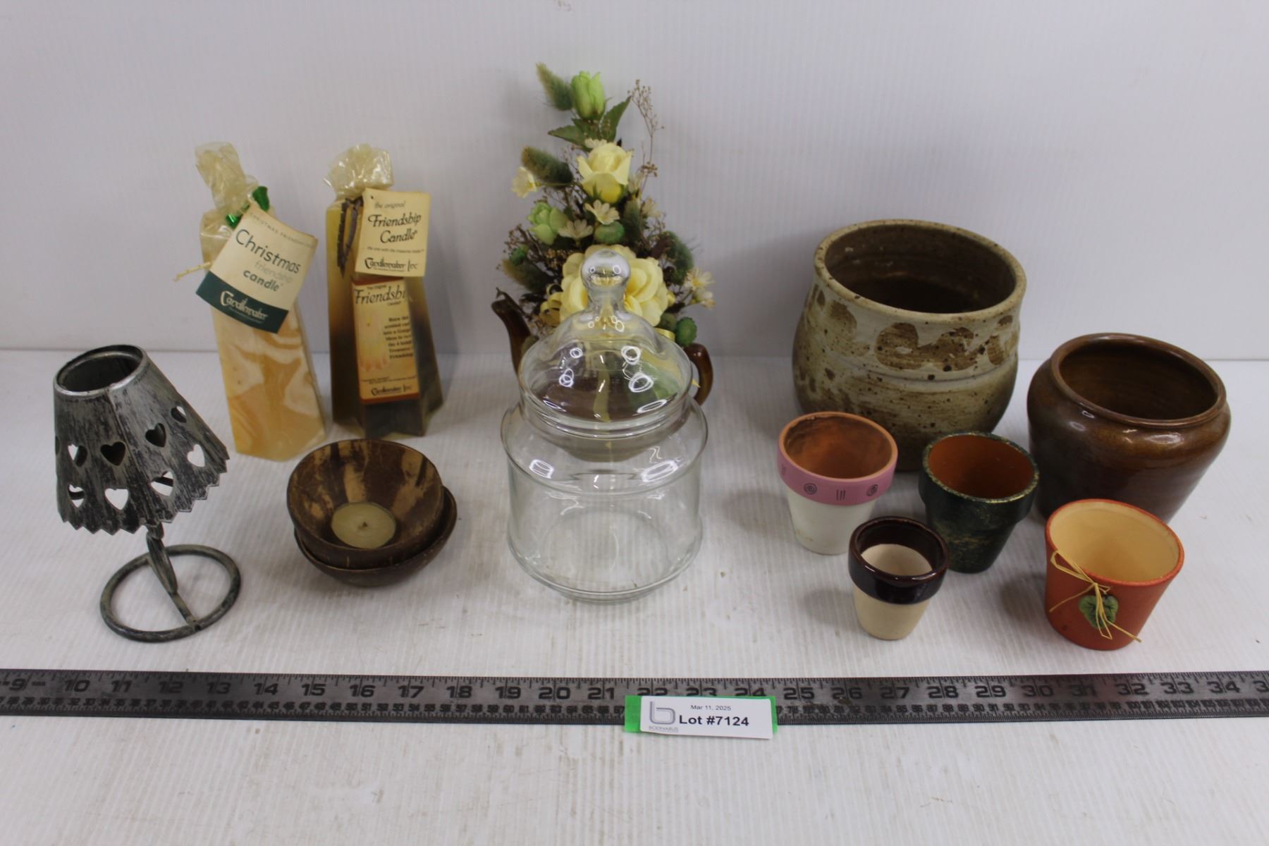 Assorted Candle Holders. Candles & Ceramic Flower Pots
