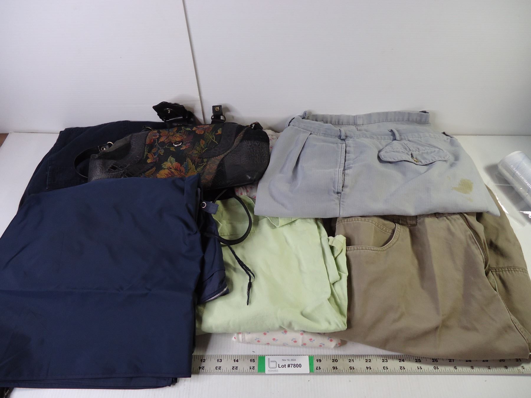 Assorted Clothing-Shorts, Tank Top, Garment Bag, Purse