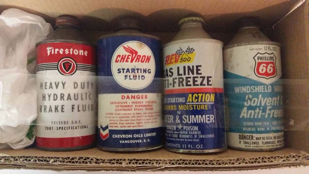 Assorted Cone Top Tins (4) (Firestone, Chevron, Rev500, Phillips 66)