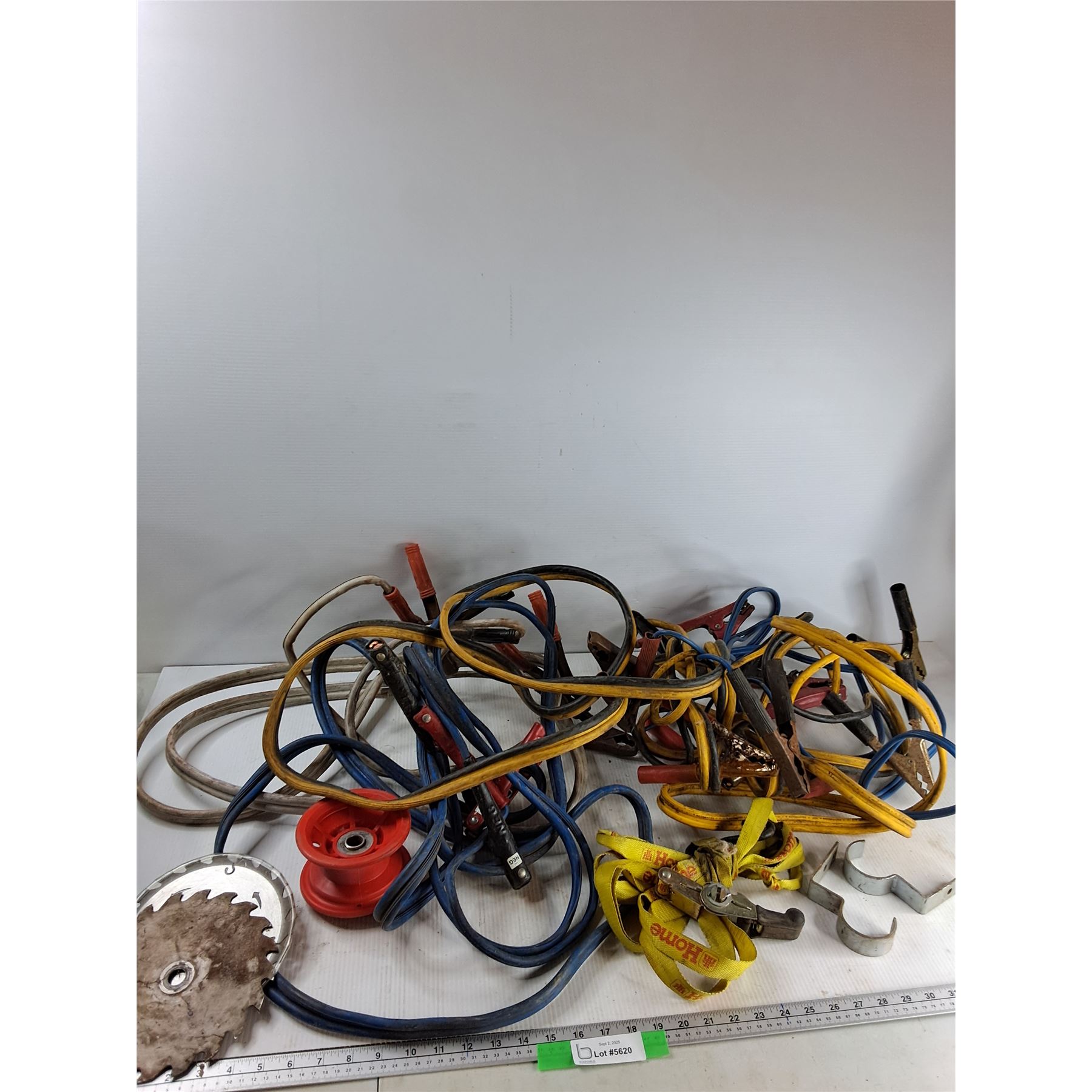 Assorted Jump Cables, (2) Saw Blades, (2) Rod Hooks, Misc - As Is  -  PICK UP