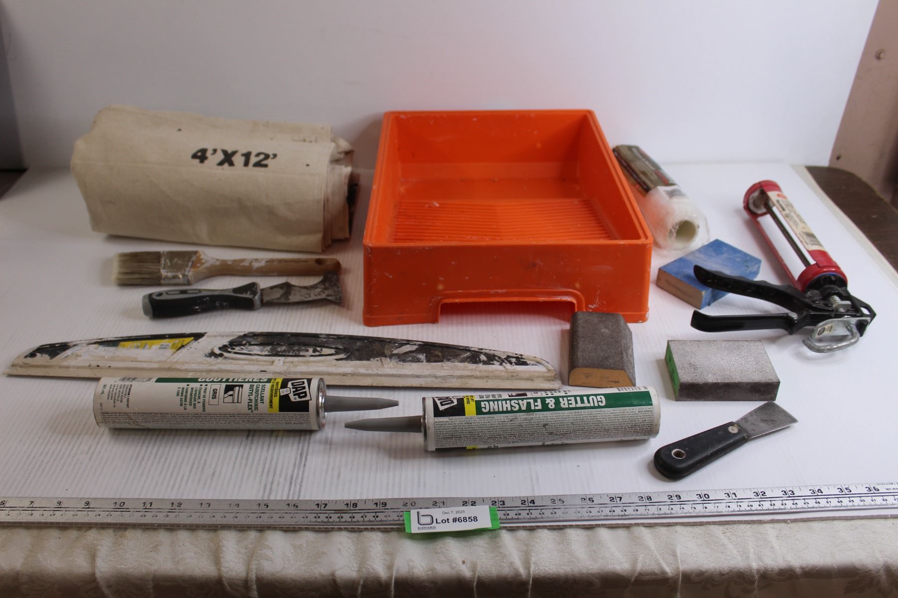 Assorted Painting Supplies - Paint Tray, Paintbrush, Misc.