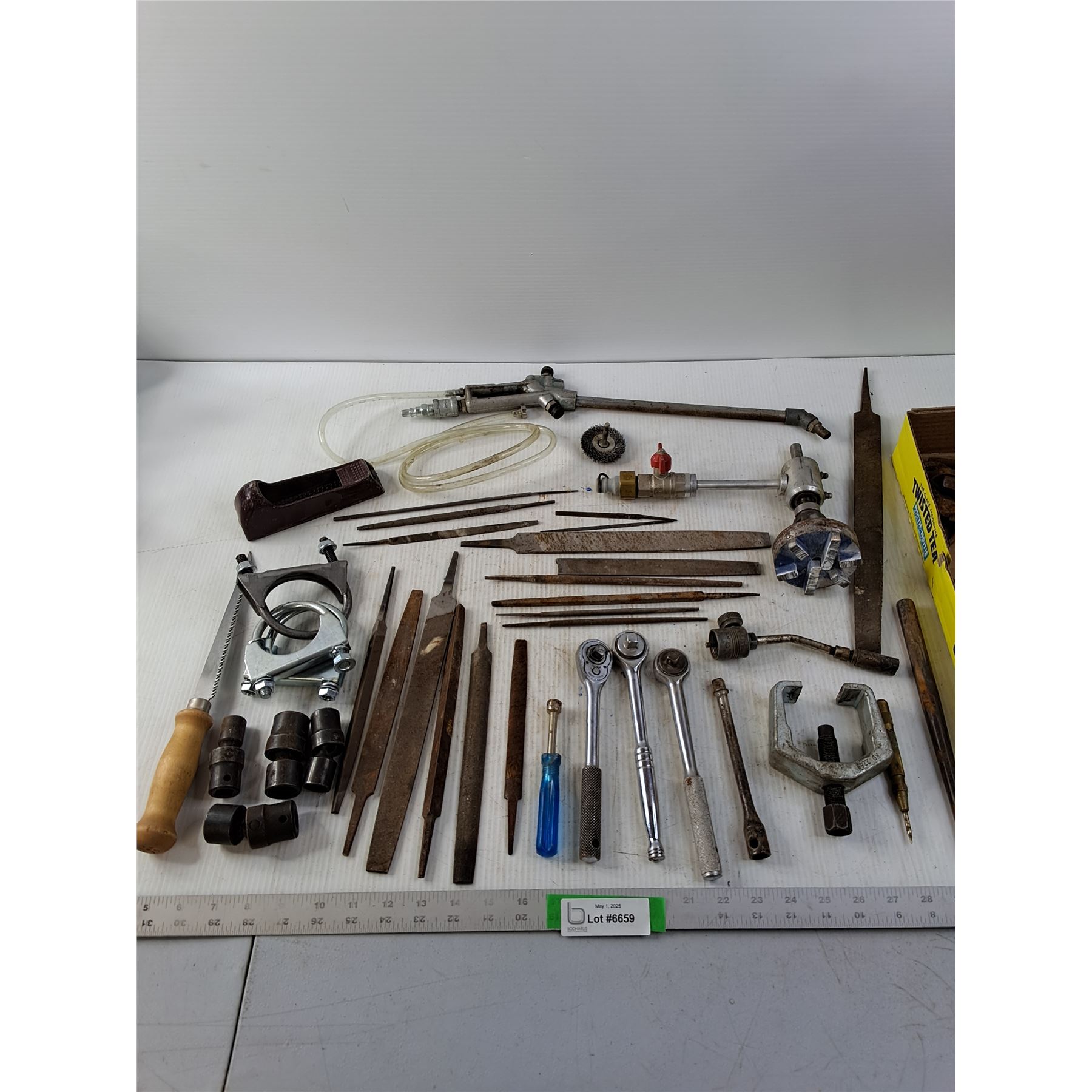 As pictured. Files,swivel sockets,ratchet wrenches, pullers,air tools and wedges.
