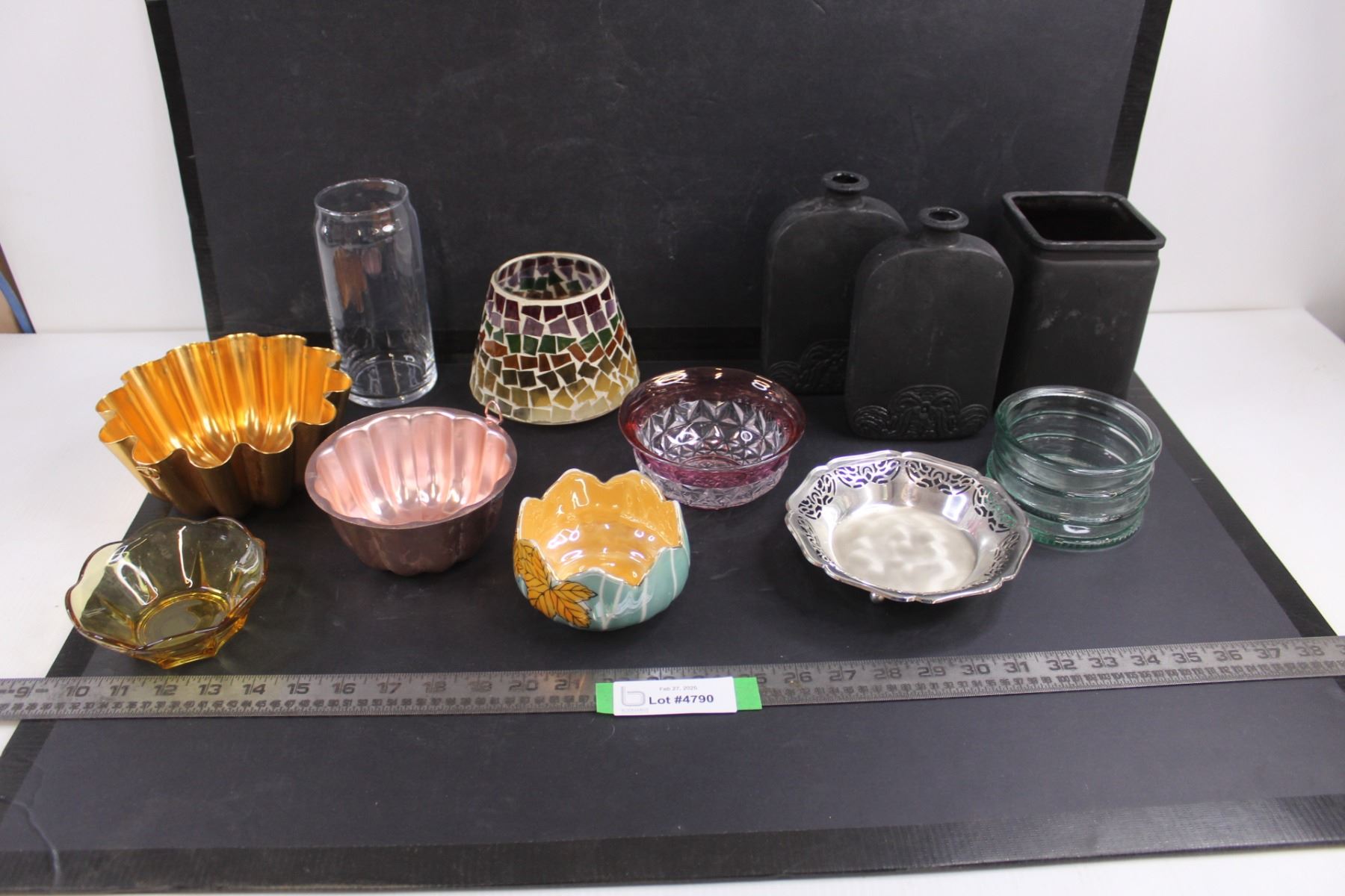 Assorted Trinket Dishes, Candle Holders, Bundt Pans