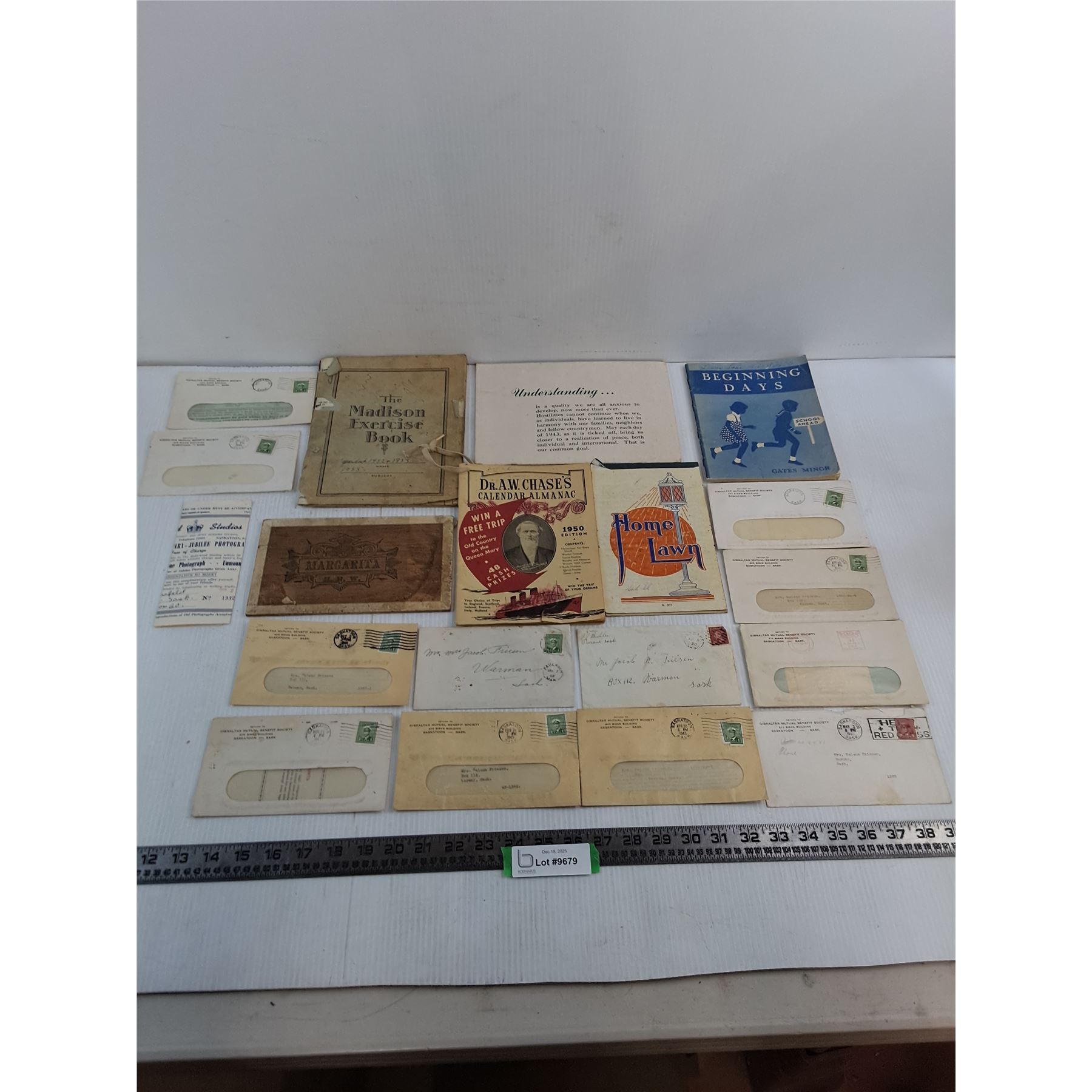 Assorted Vintage Literature, Letters, Note Books, Plaque