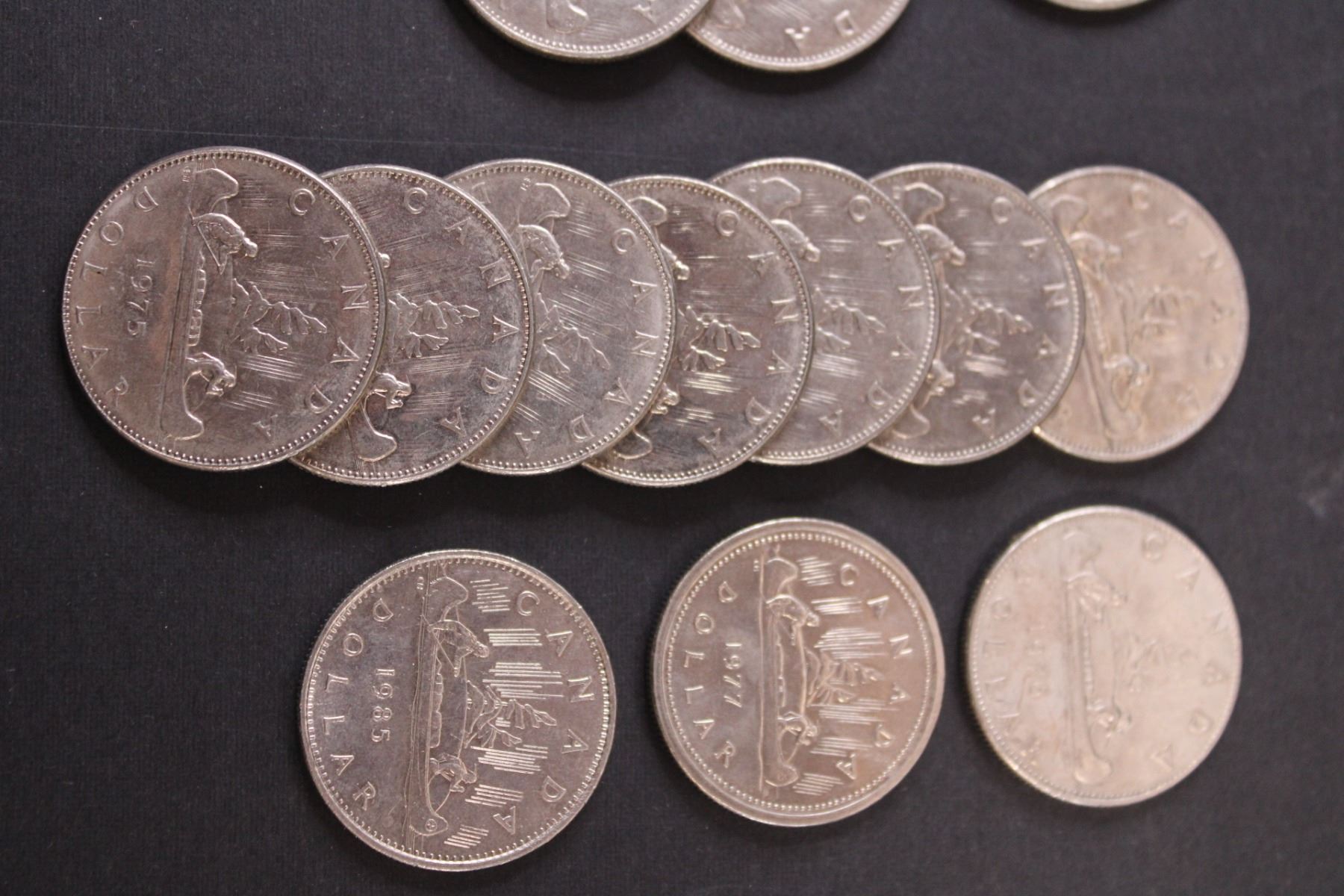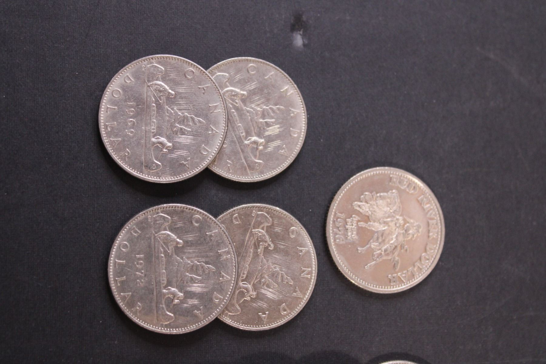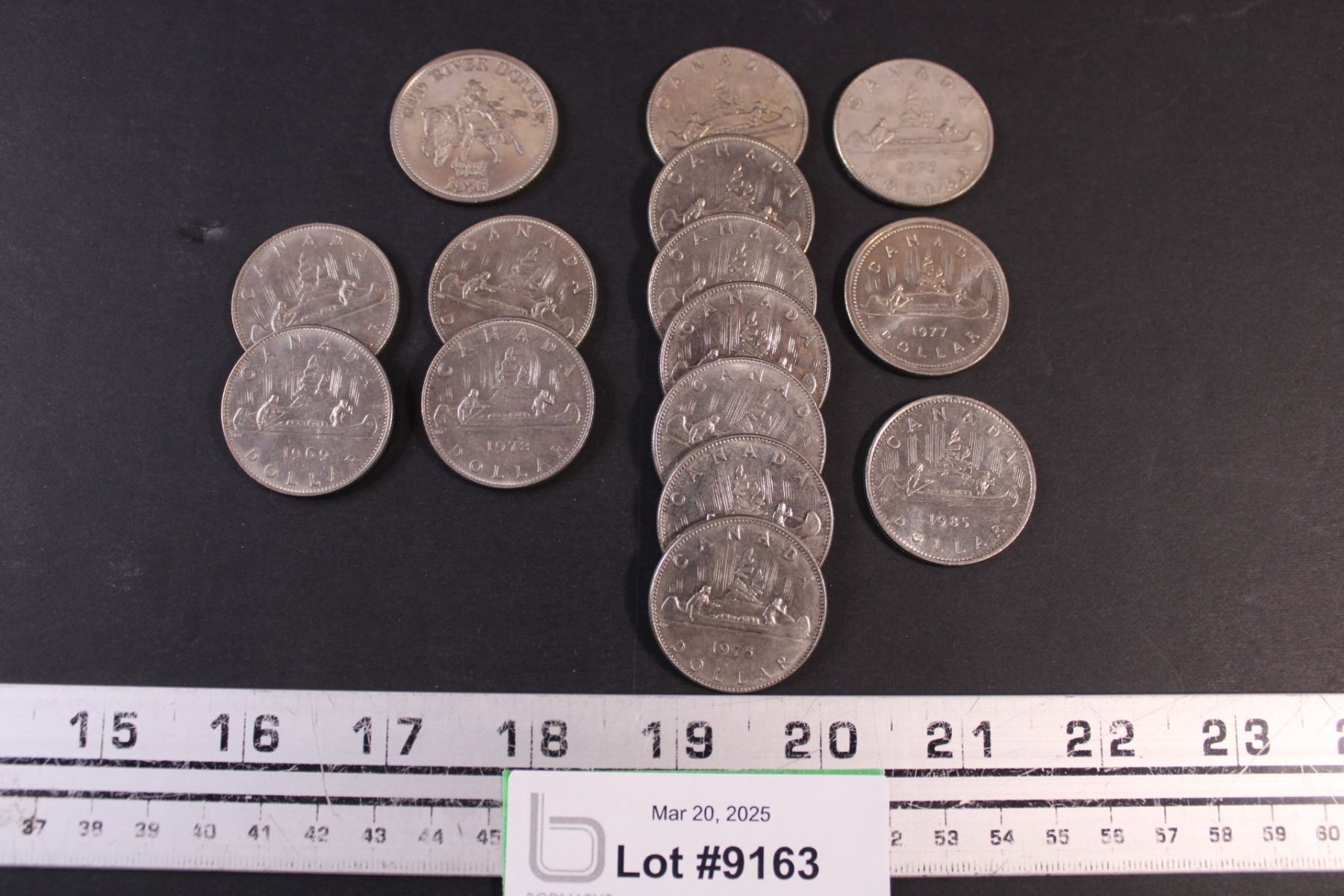 Assorted Year Canadian Nickel Dollars (14) and one 1976 Red River Toker Dollar