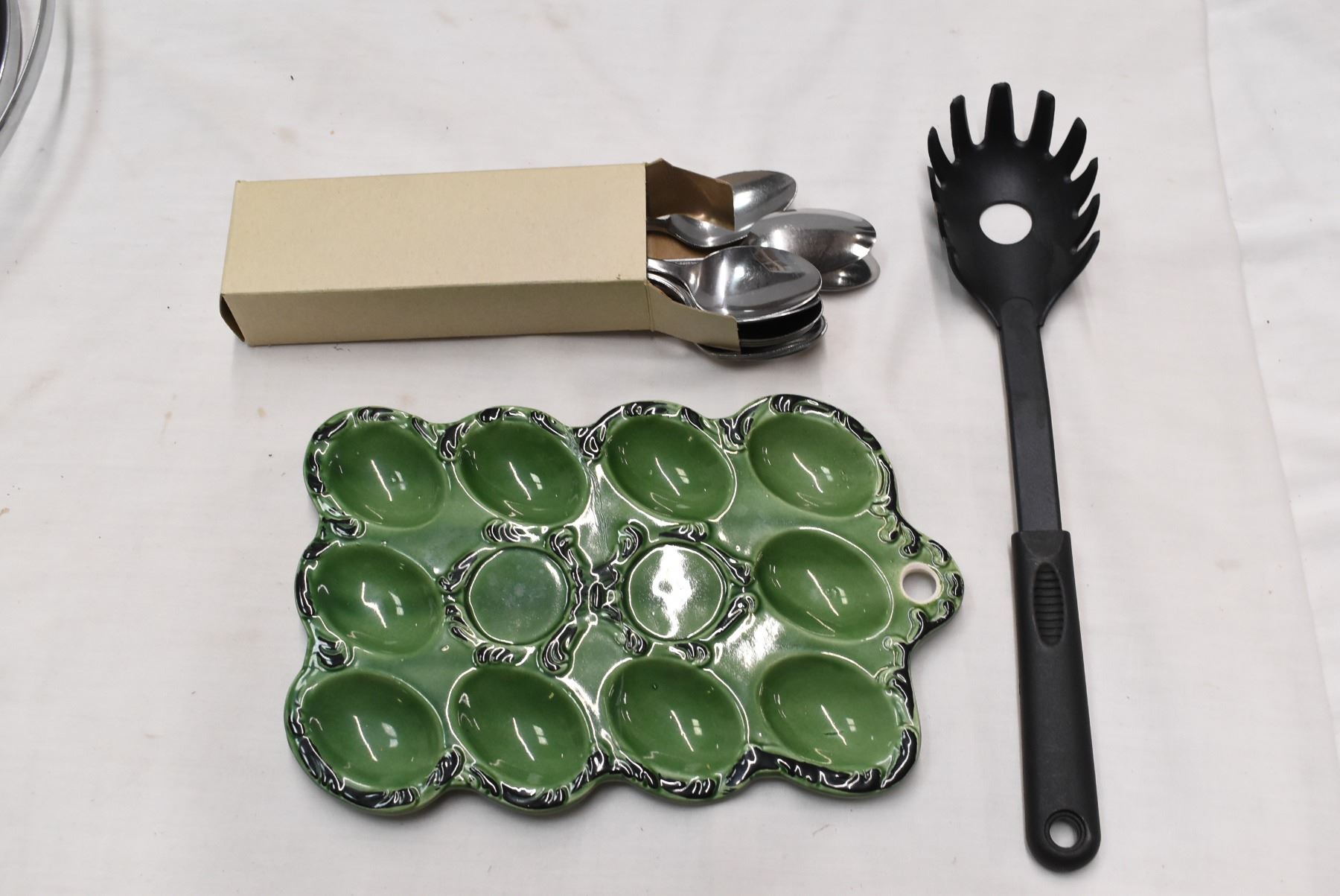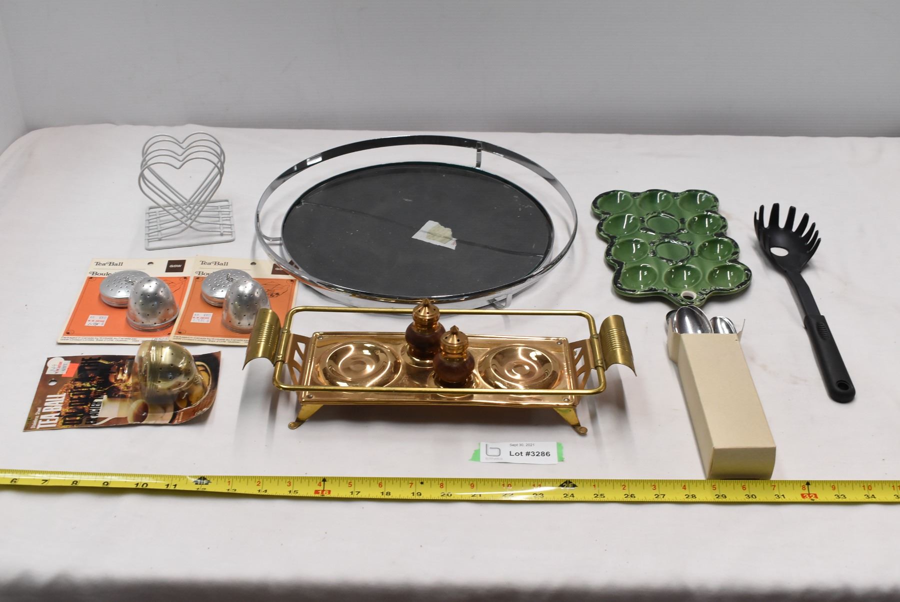 Assorted kitchen items. 2 trays, S&P Shaker, Reusable tea bags