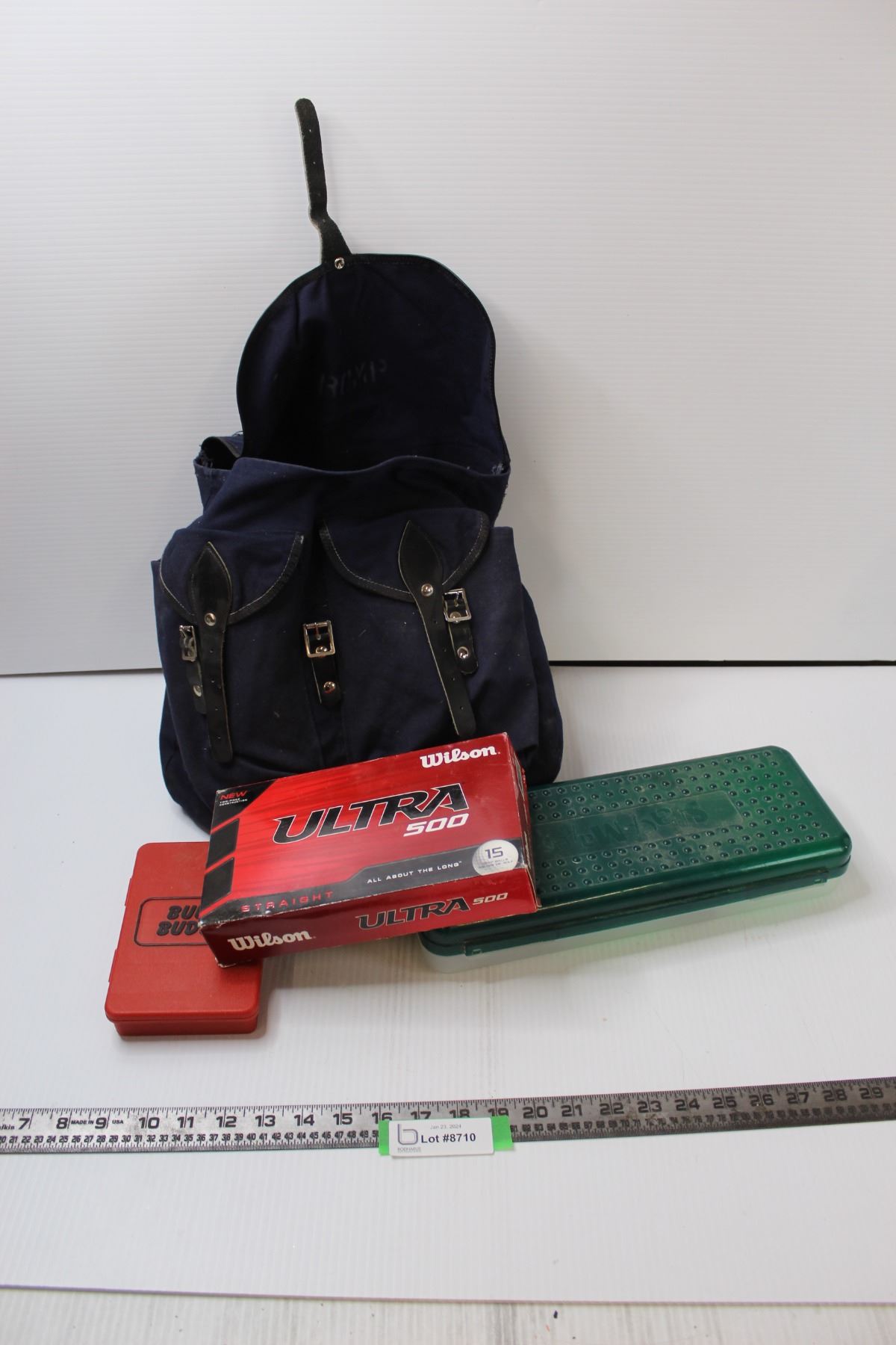 Automotive Cleaning Products, Knapsack, (15) Wilson Golf Balls, Soldering Iron, (6) Halogen Bulbs In