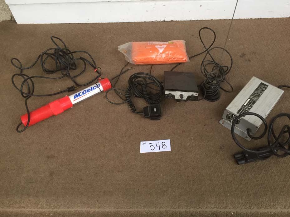 Battery charger, battery blanket, vintage Realistic CB radio, AC Delco mechanics light