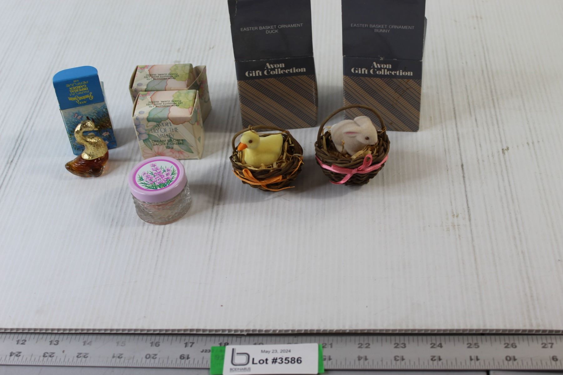 Avon Duck & Bunny Ornaments, Avon Duck Bottle Perfume, (2) Avon Cream Sachet