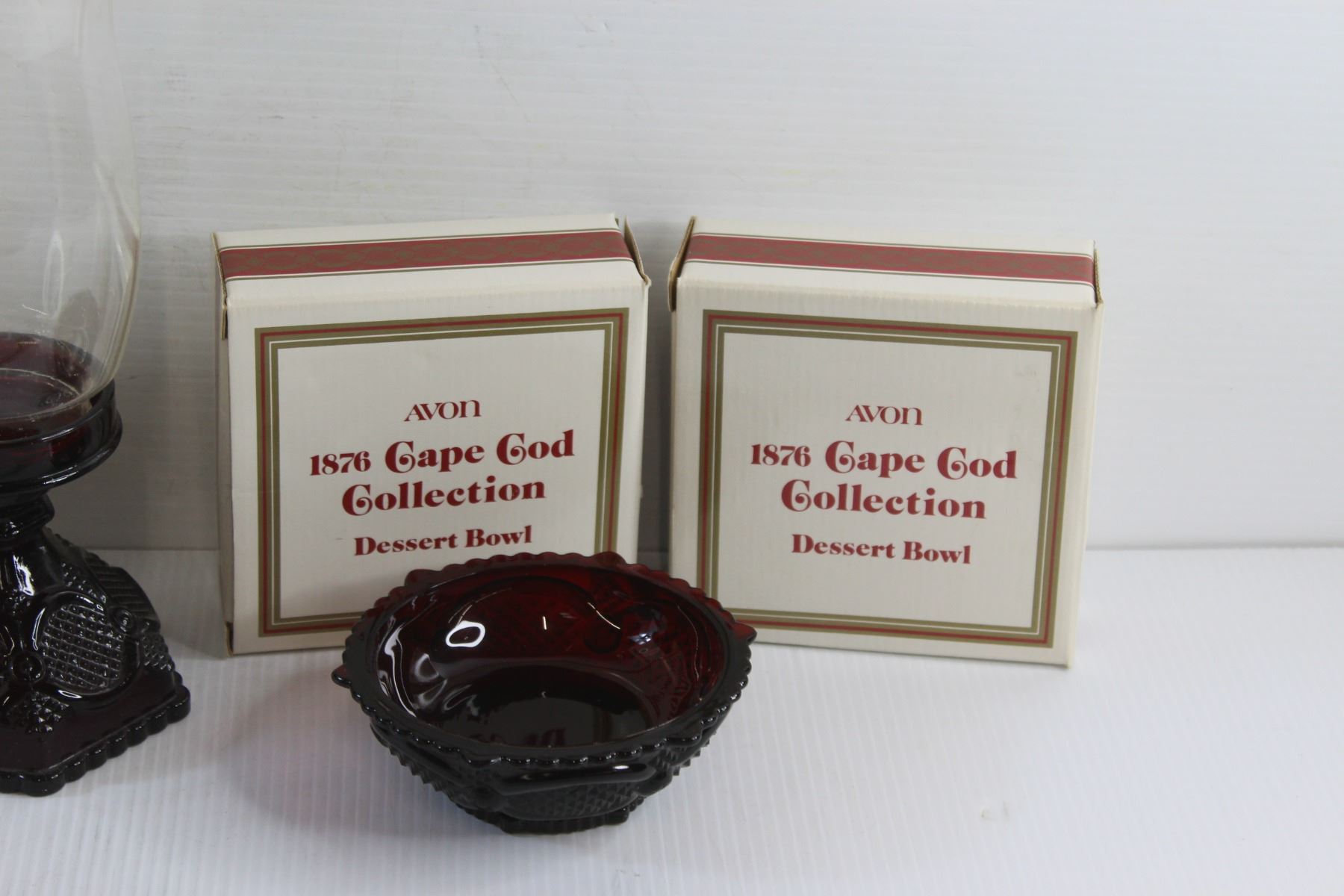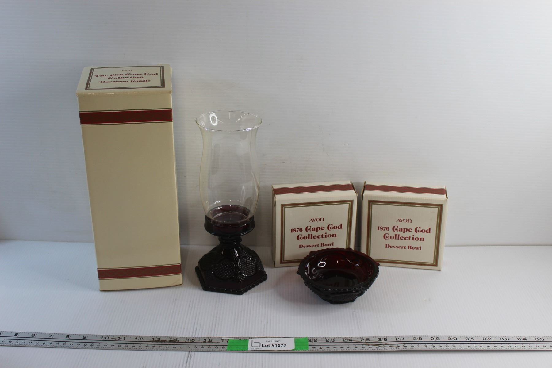 Avon The 1876 Cape Cod Collection Hurricane Candle and (2) Dessert Bowls