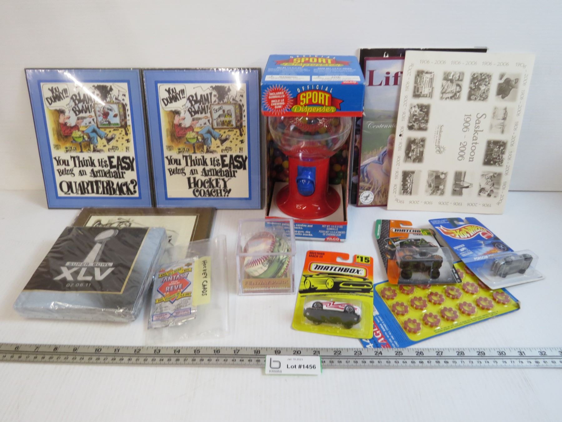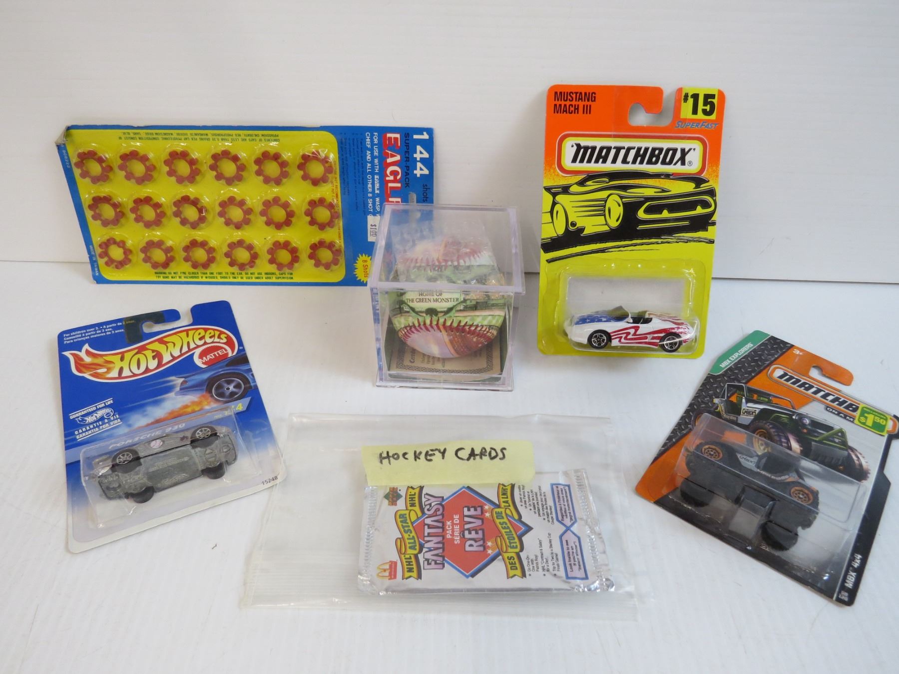 BGum Ball Dispenser - (1) Hot Wheel - (2) Match Box - (2) Wall Hanging Sayings - Fenway Park Baseball - Misc Items
