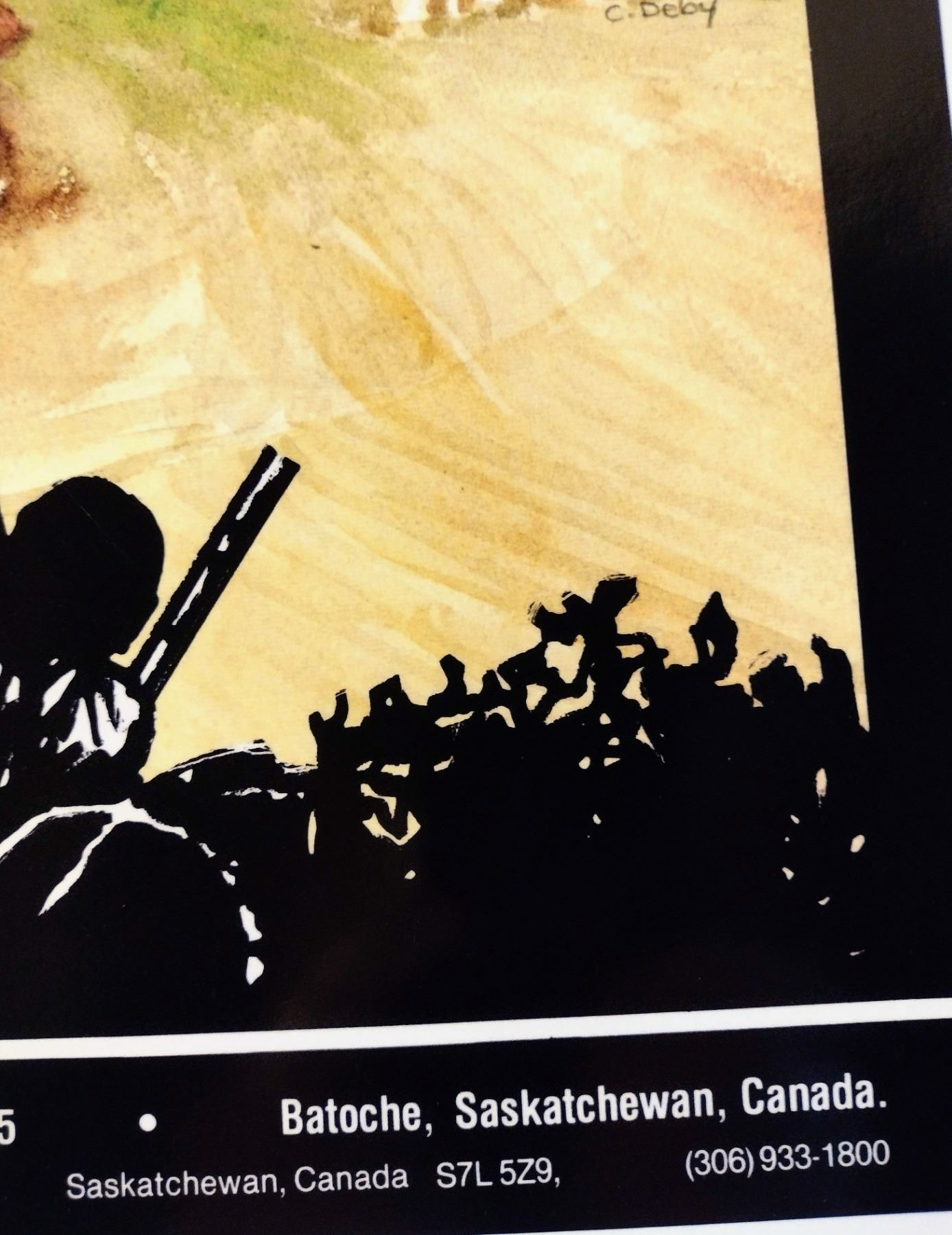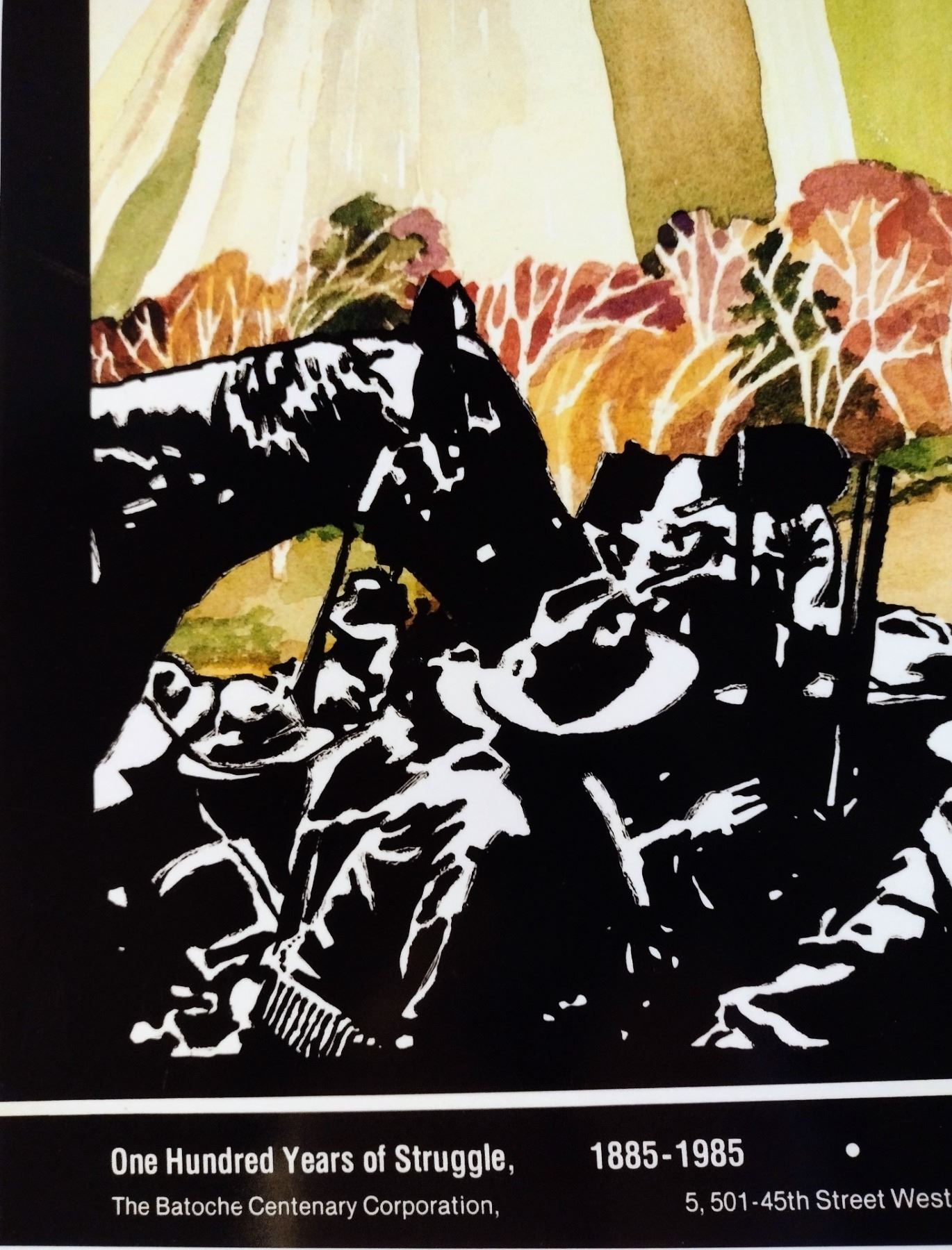 “Back to Batoche,” framed poster (reproduction) circa, 1985. 22 inches by 14 inches