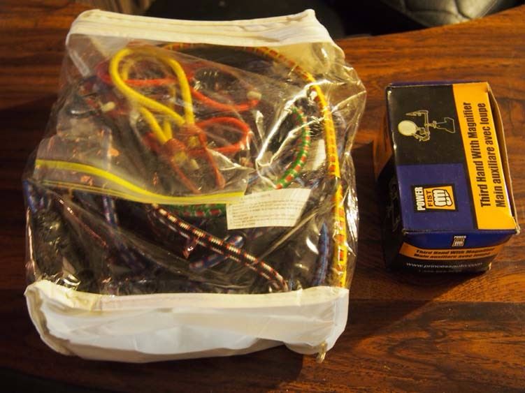 Bag Full Of Tie Down Straps, Third Hand With Magnifier