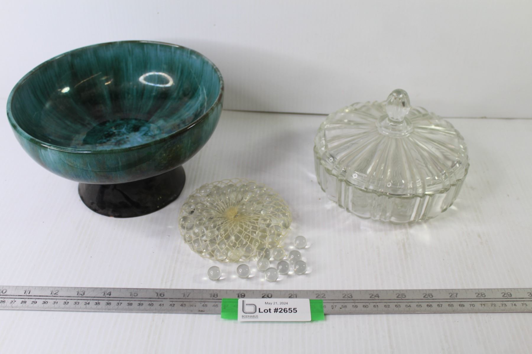 Bag of Clear Marbles - BMP Pedestal Bowl - Lidded Glass Dish