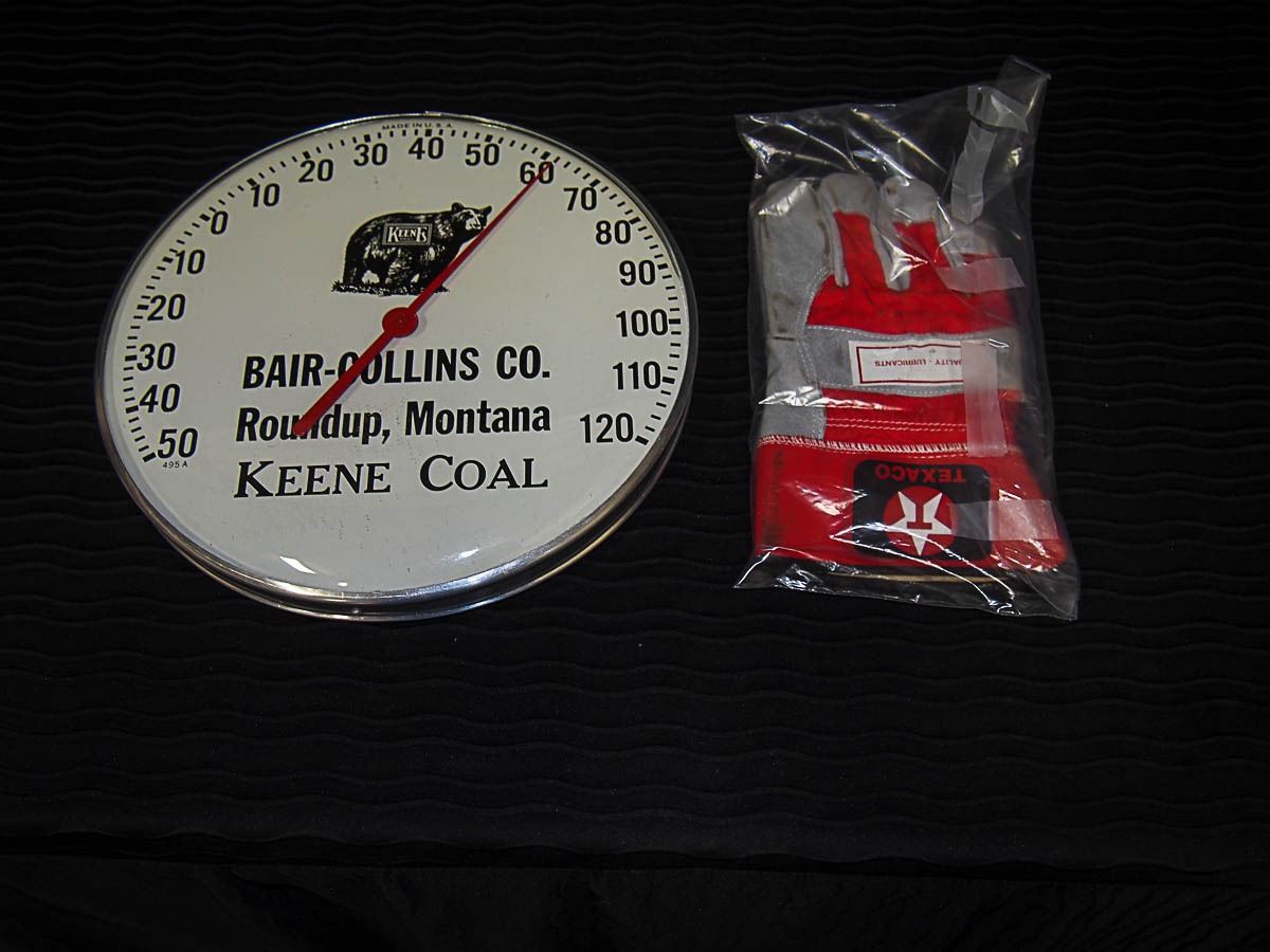 Bair-Collins Keene Coal Thermometer & New Texaco Work Gloves