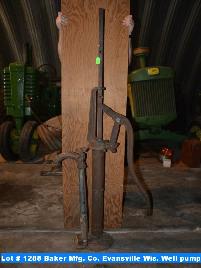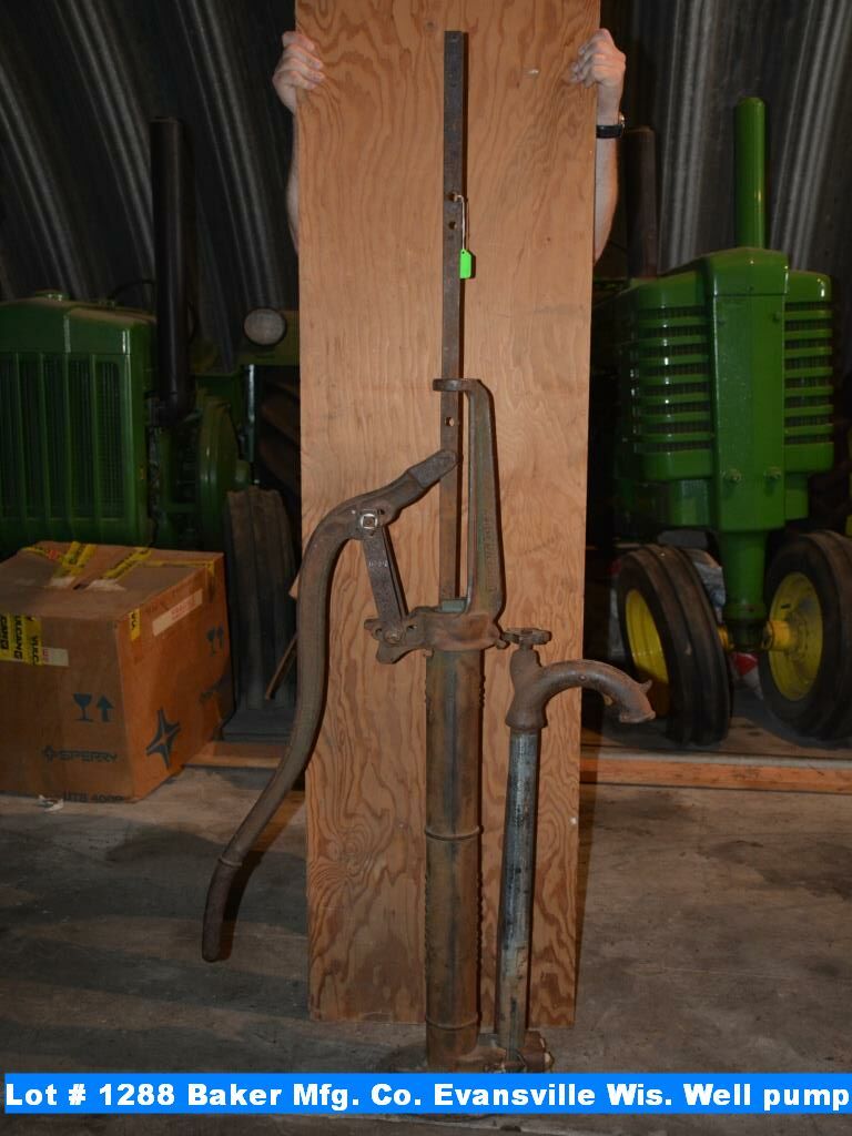 Baker Mfg. Co. Evansville Wis. Well pump with metal handle, painted, unpainted original