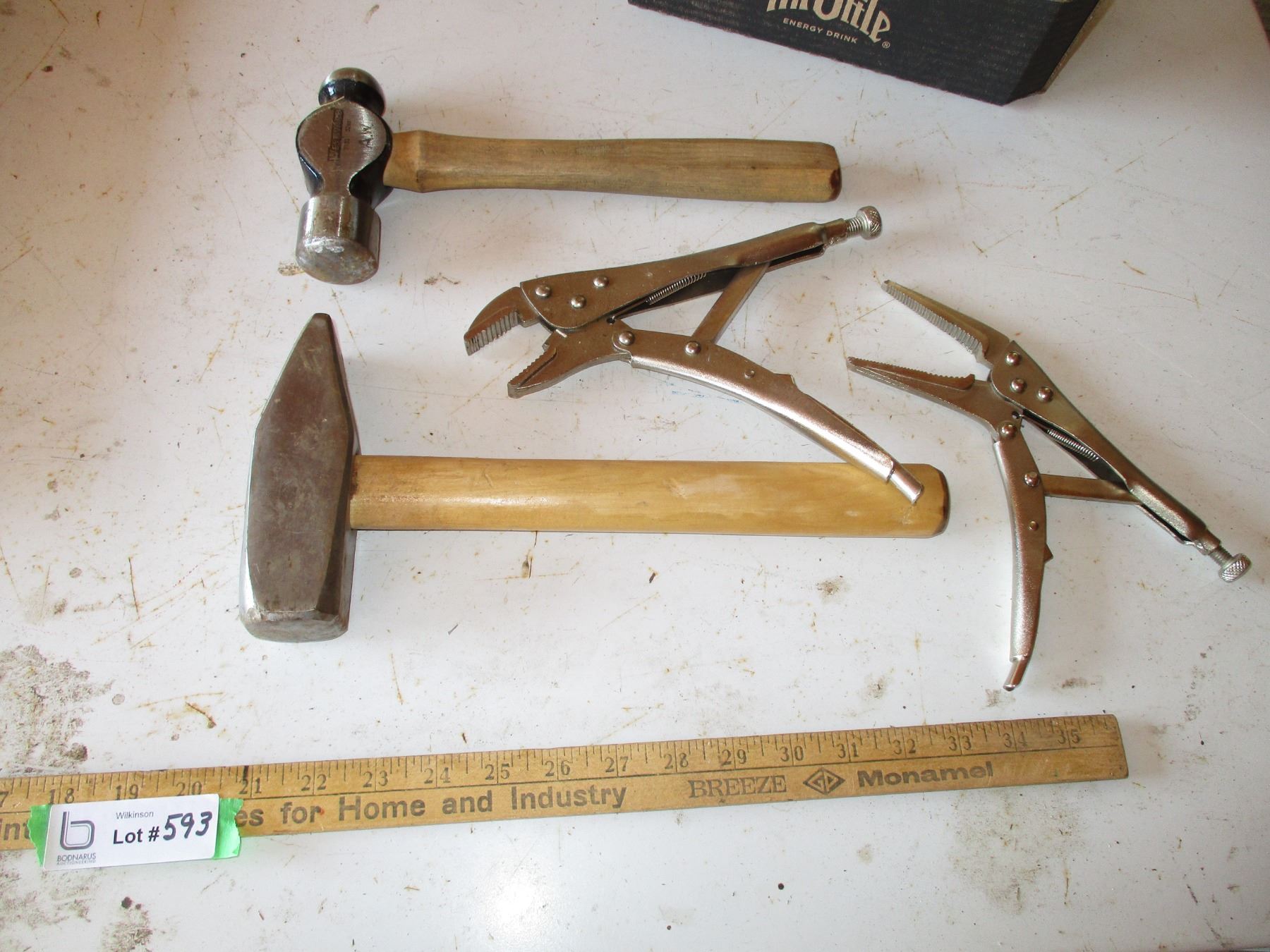 Ballpean Hammer, Blacksmith Hammer, (2) Locking Pliers