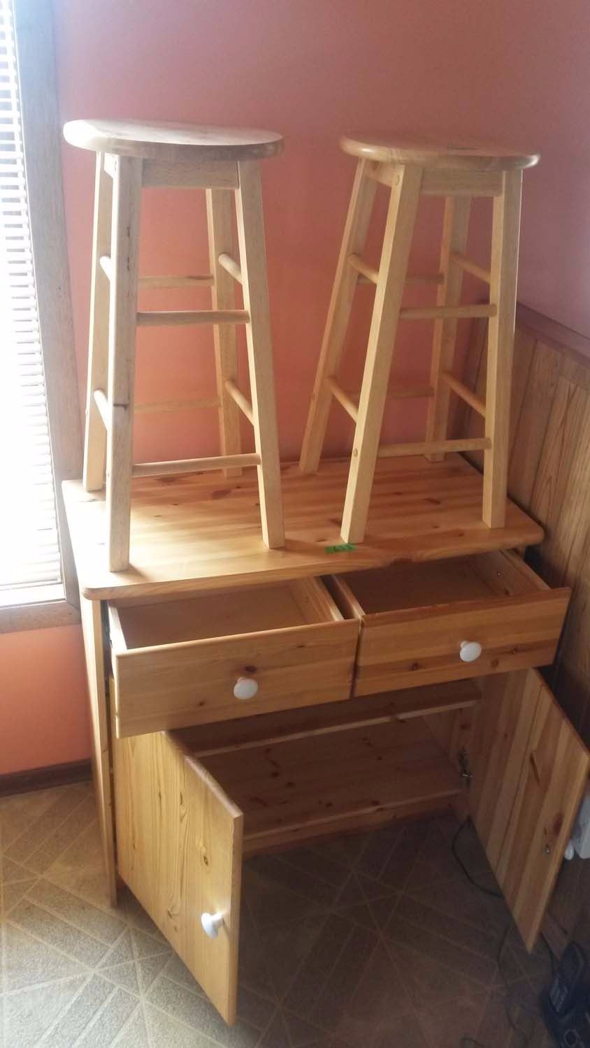 Bar Stools (2), Little Wooden Cabinet