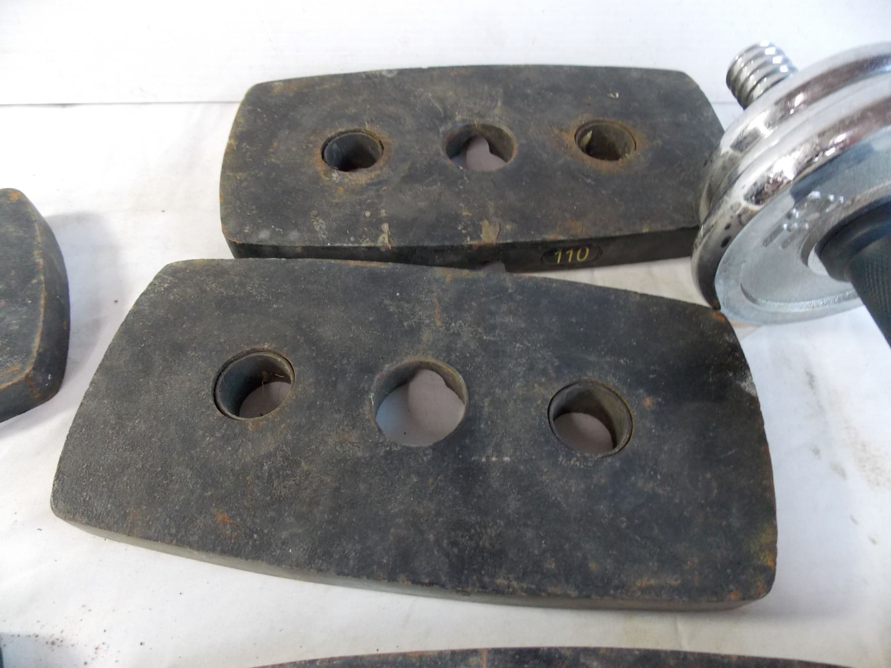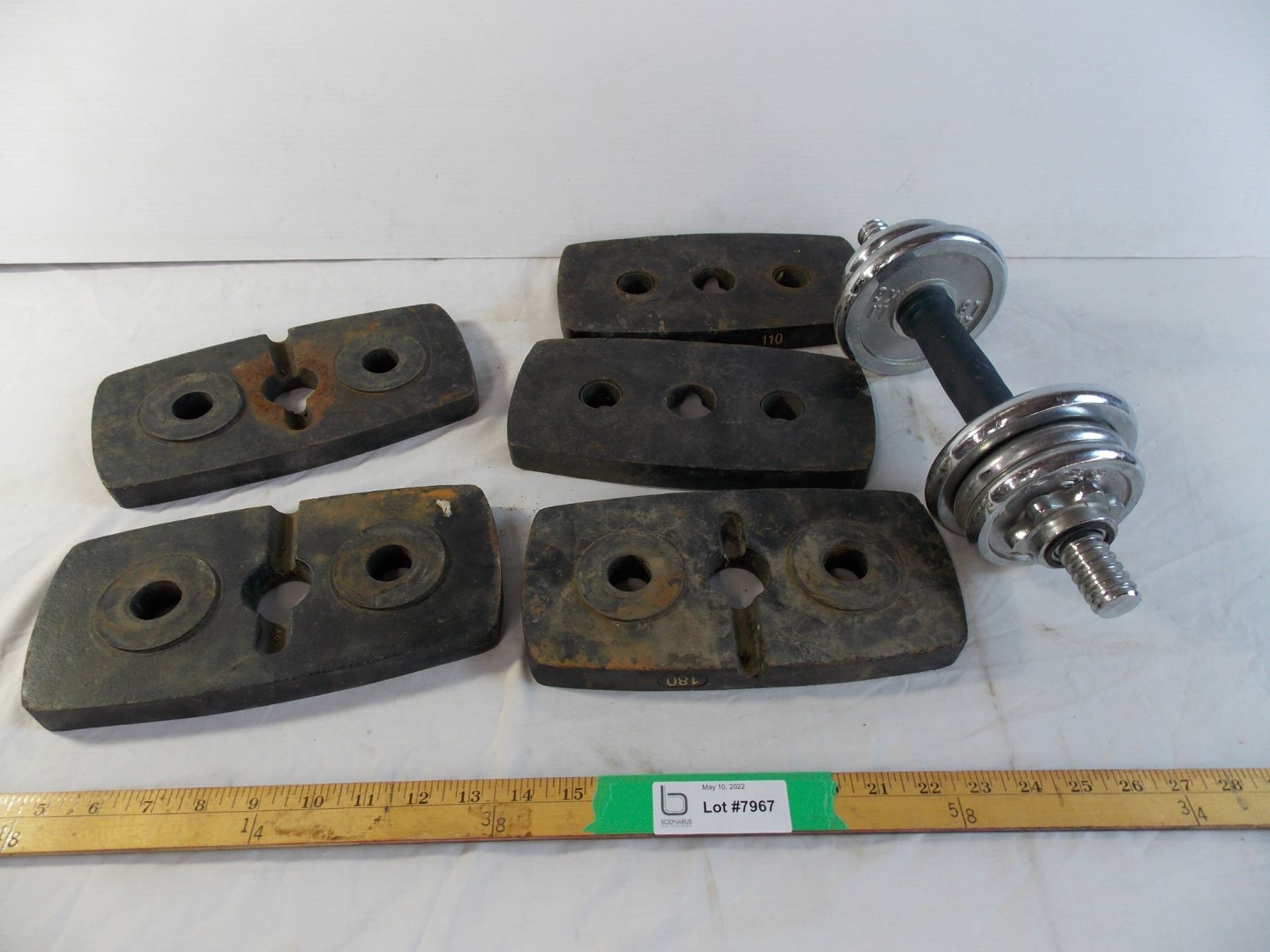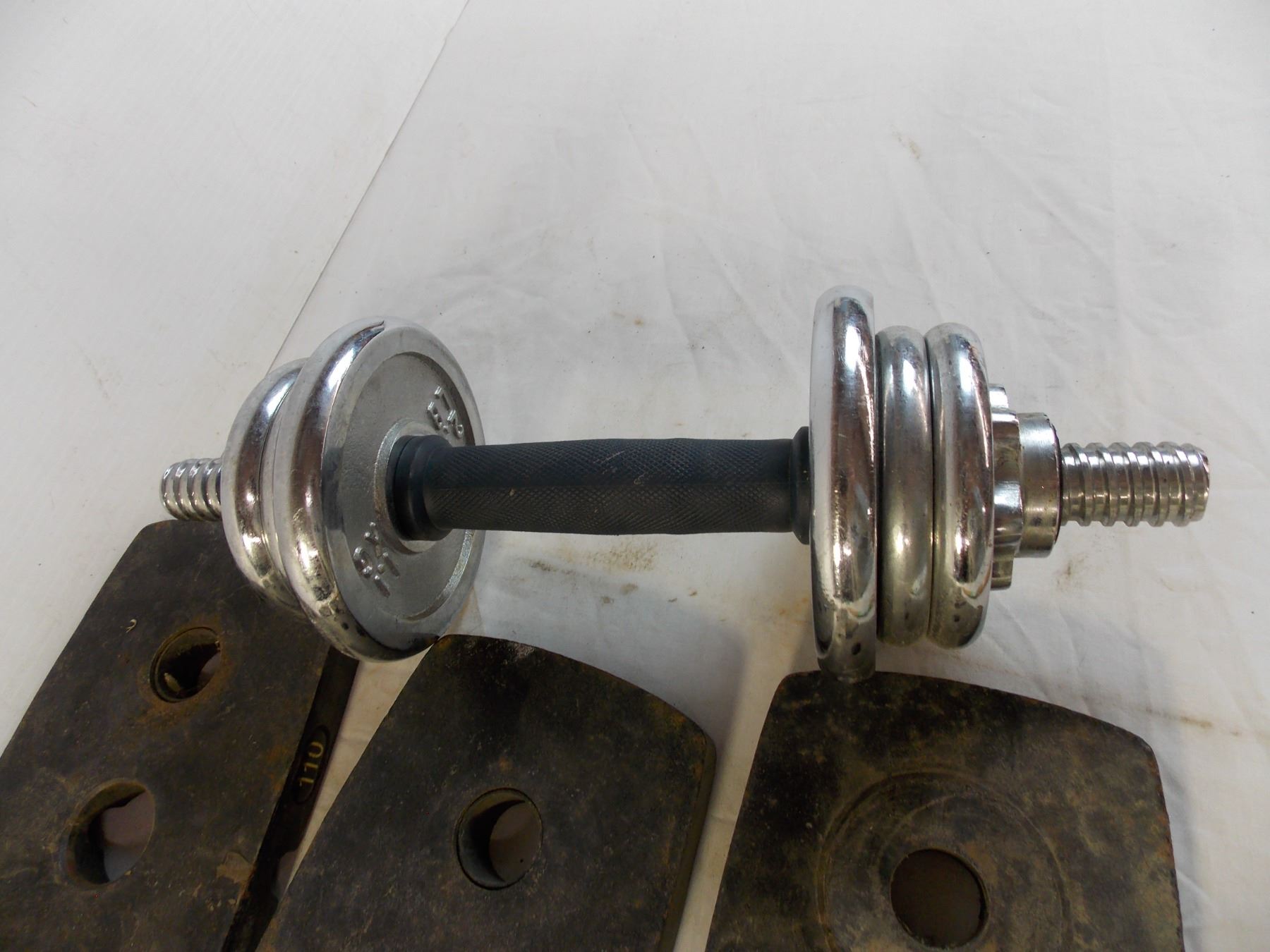 Barbell (threaded) with 10lb weight + (6) 10lb steel weights
