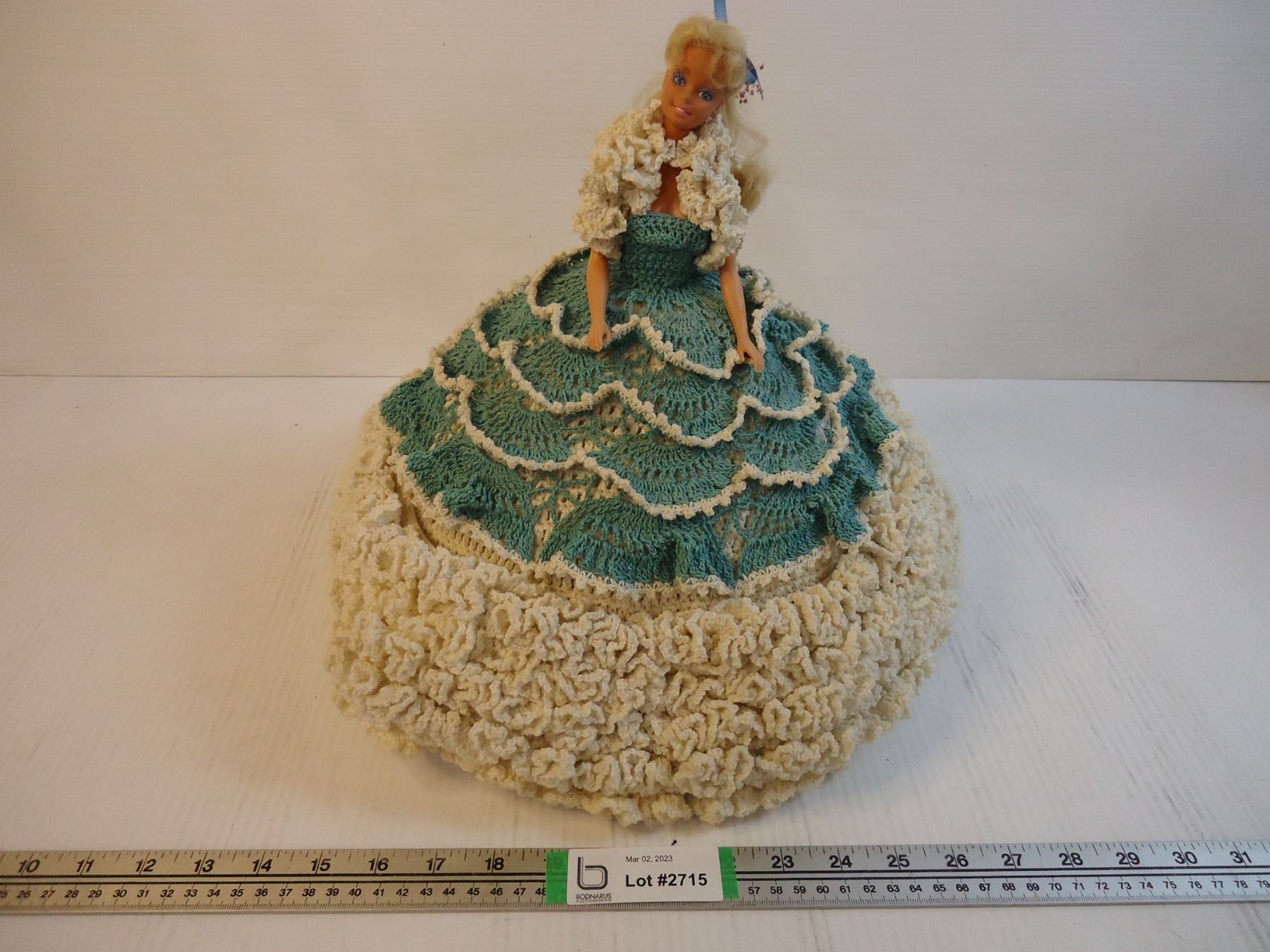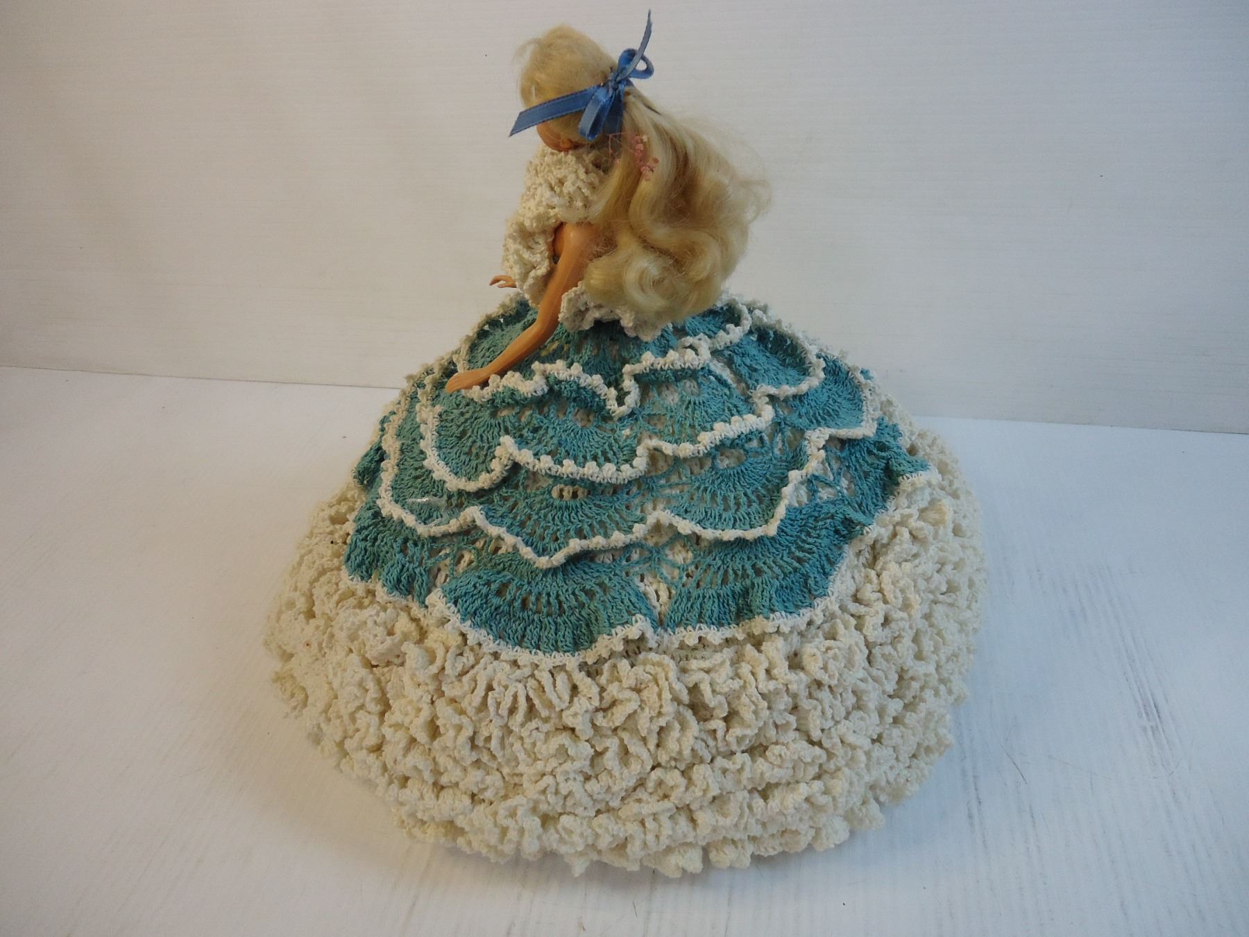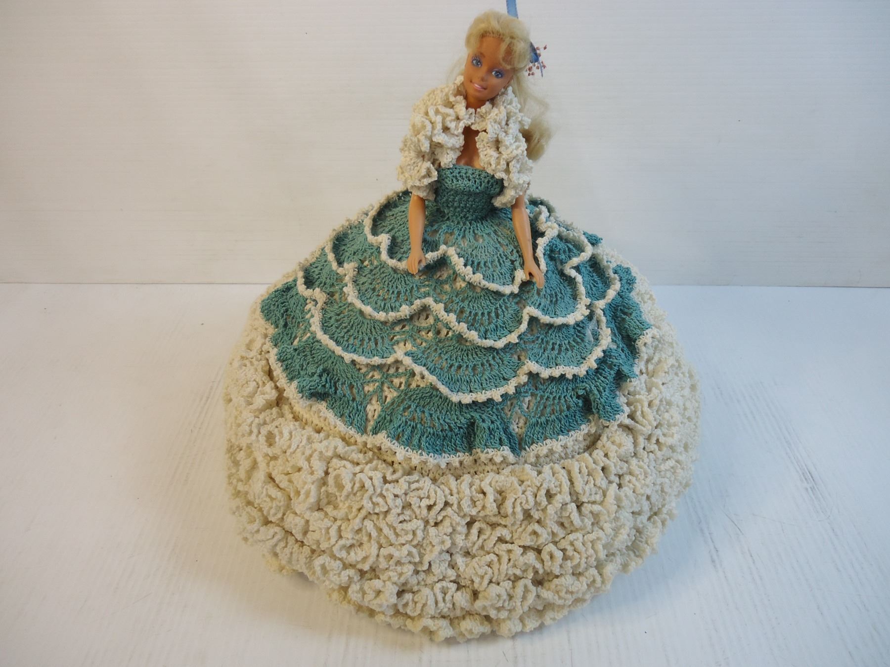 Barbie Doll in Homemade Knitted (Crochet??) Gown