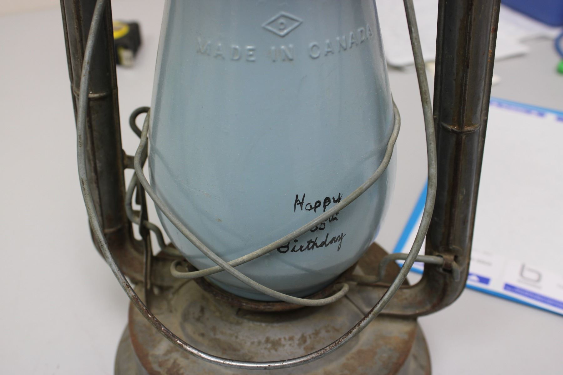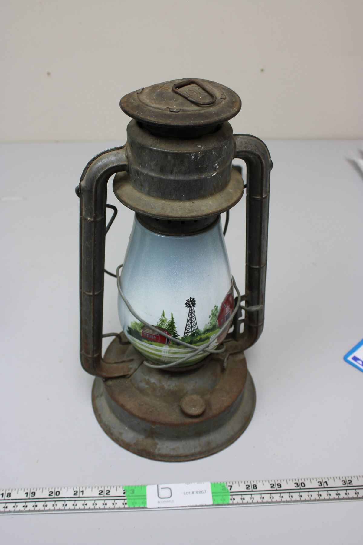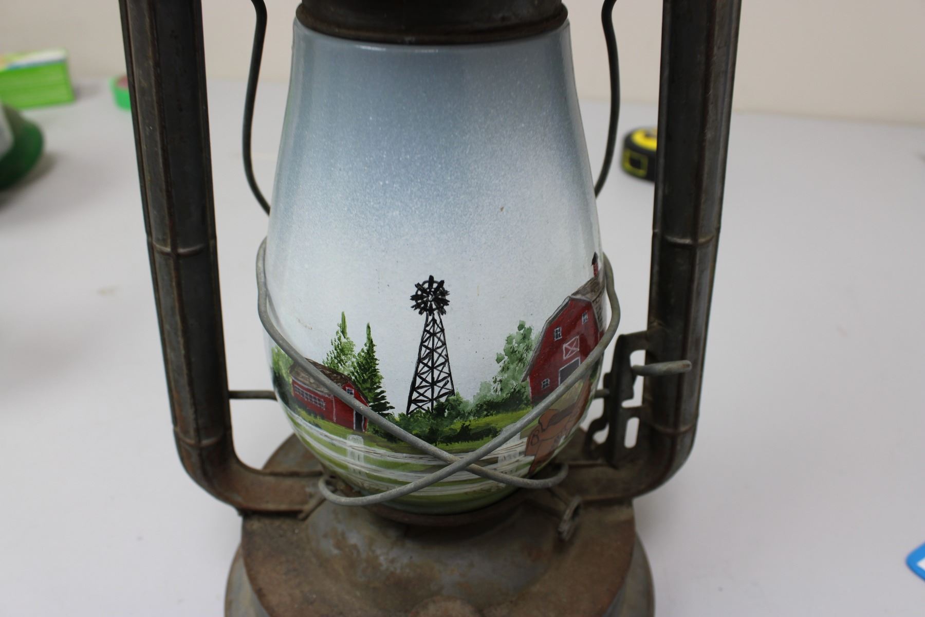 Barn Lattern w/ Hard Painted Glass