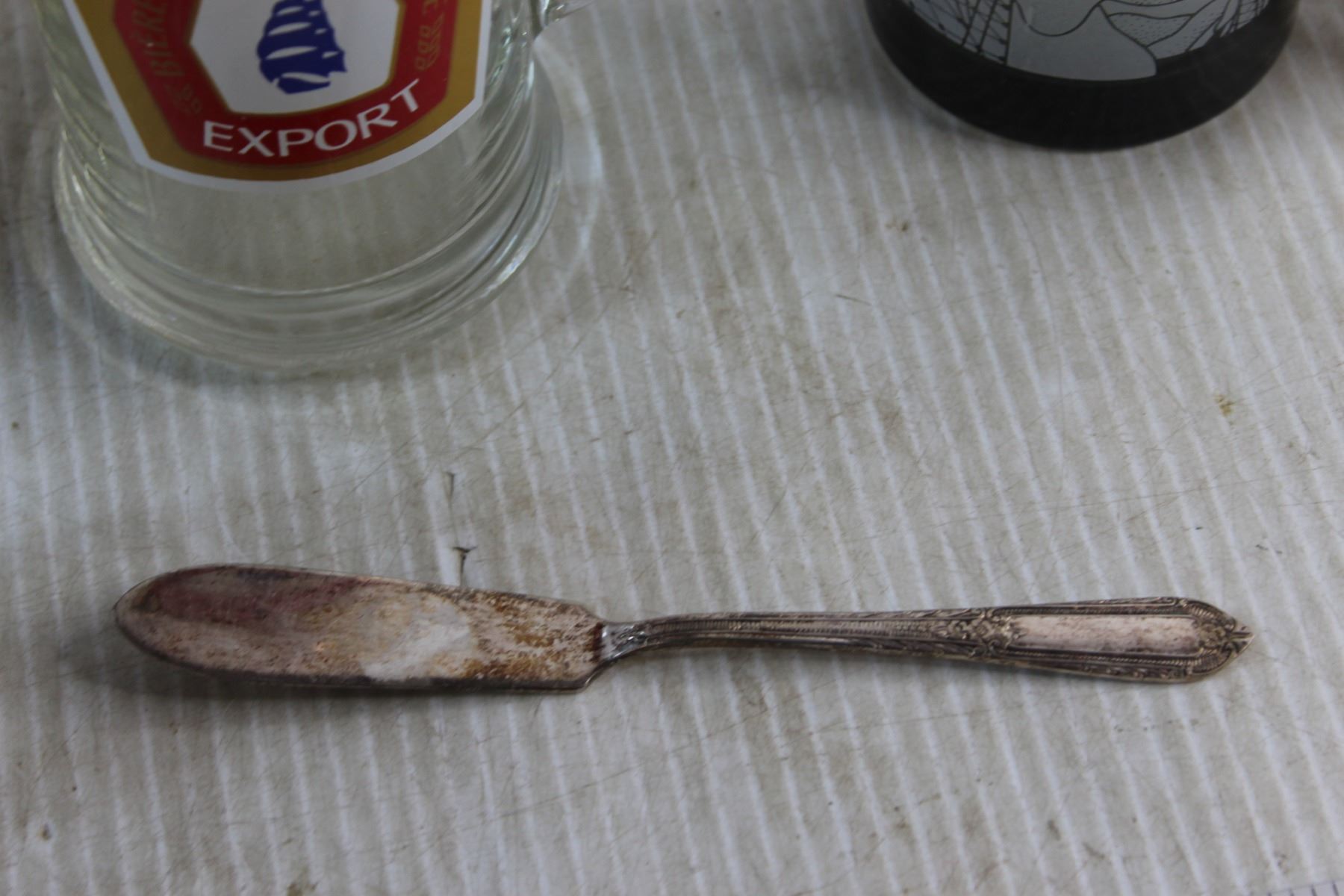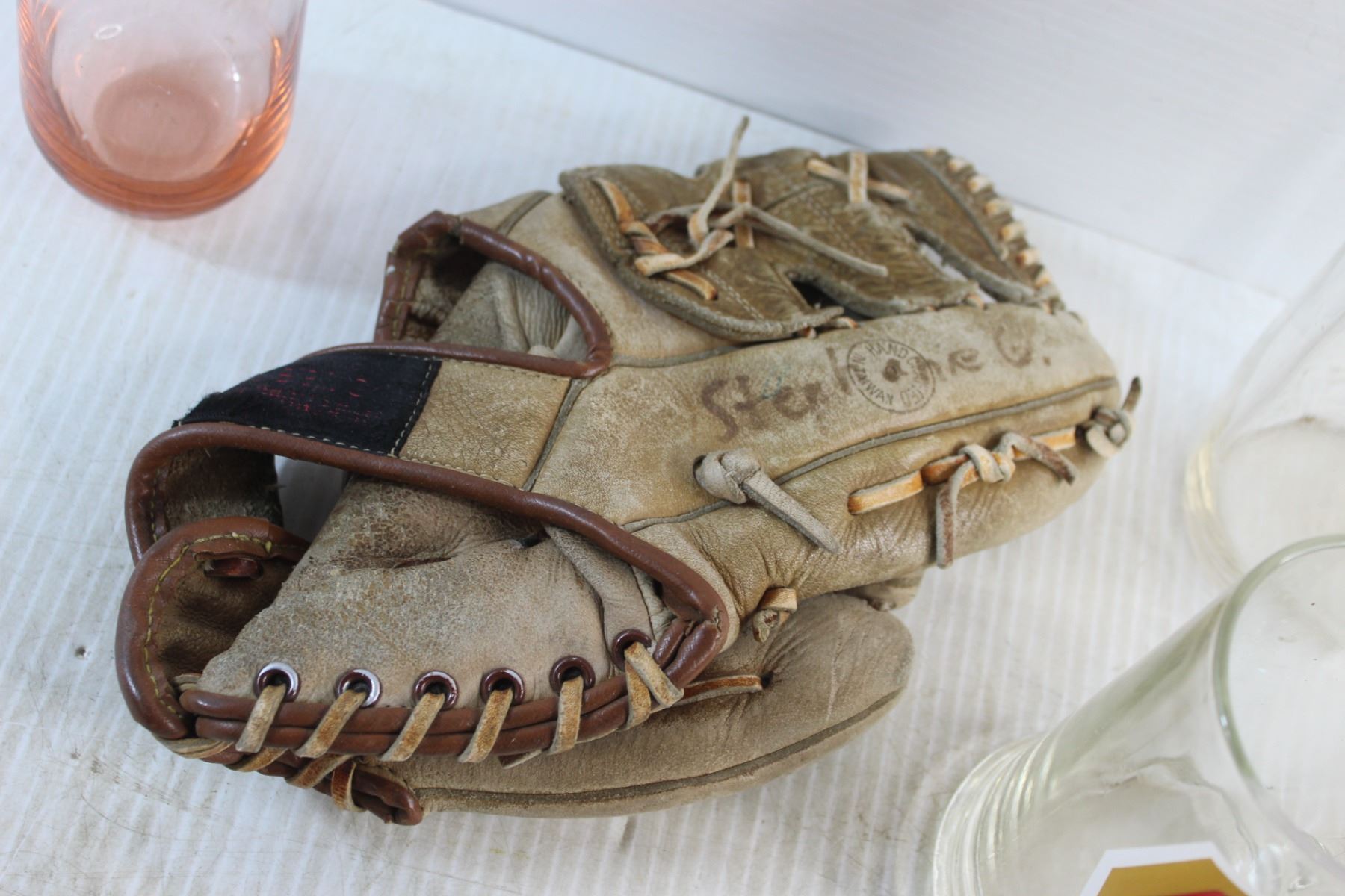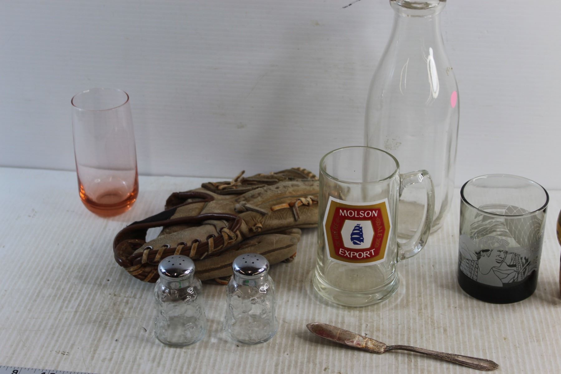 Baseball Glove, Vintage Milk Bottle, Silver Butter Knife, Salt & Pepper Shakers, Mug and Assorted Items