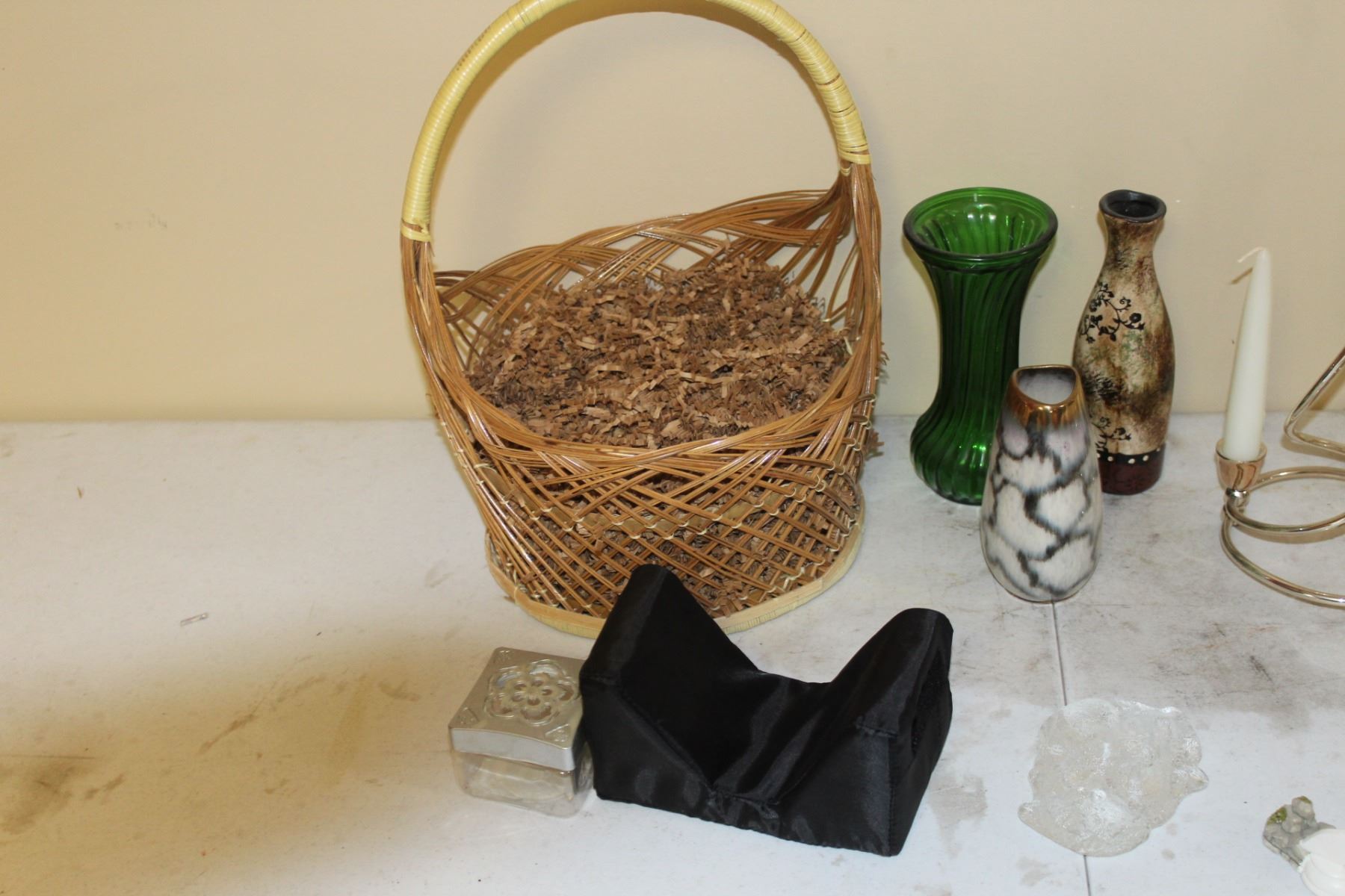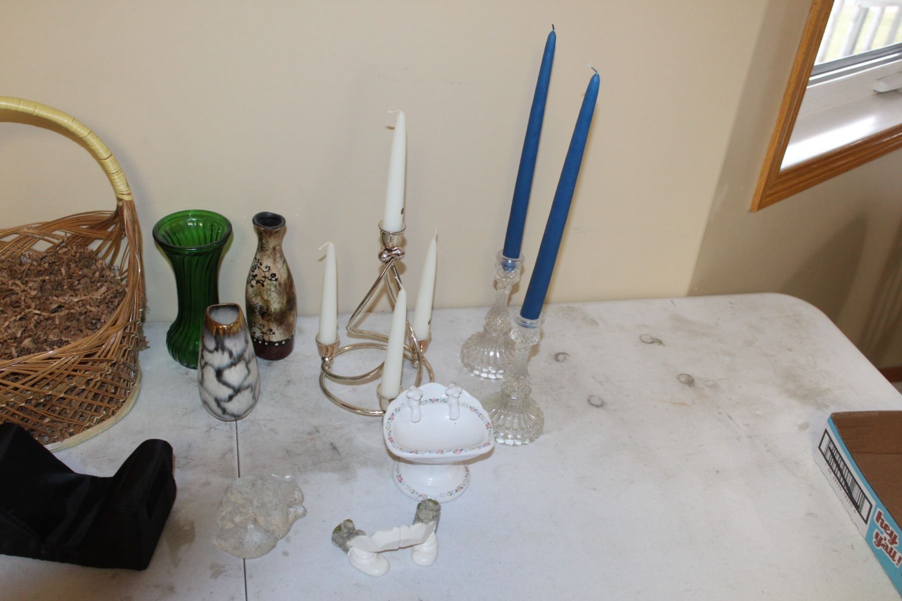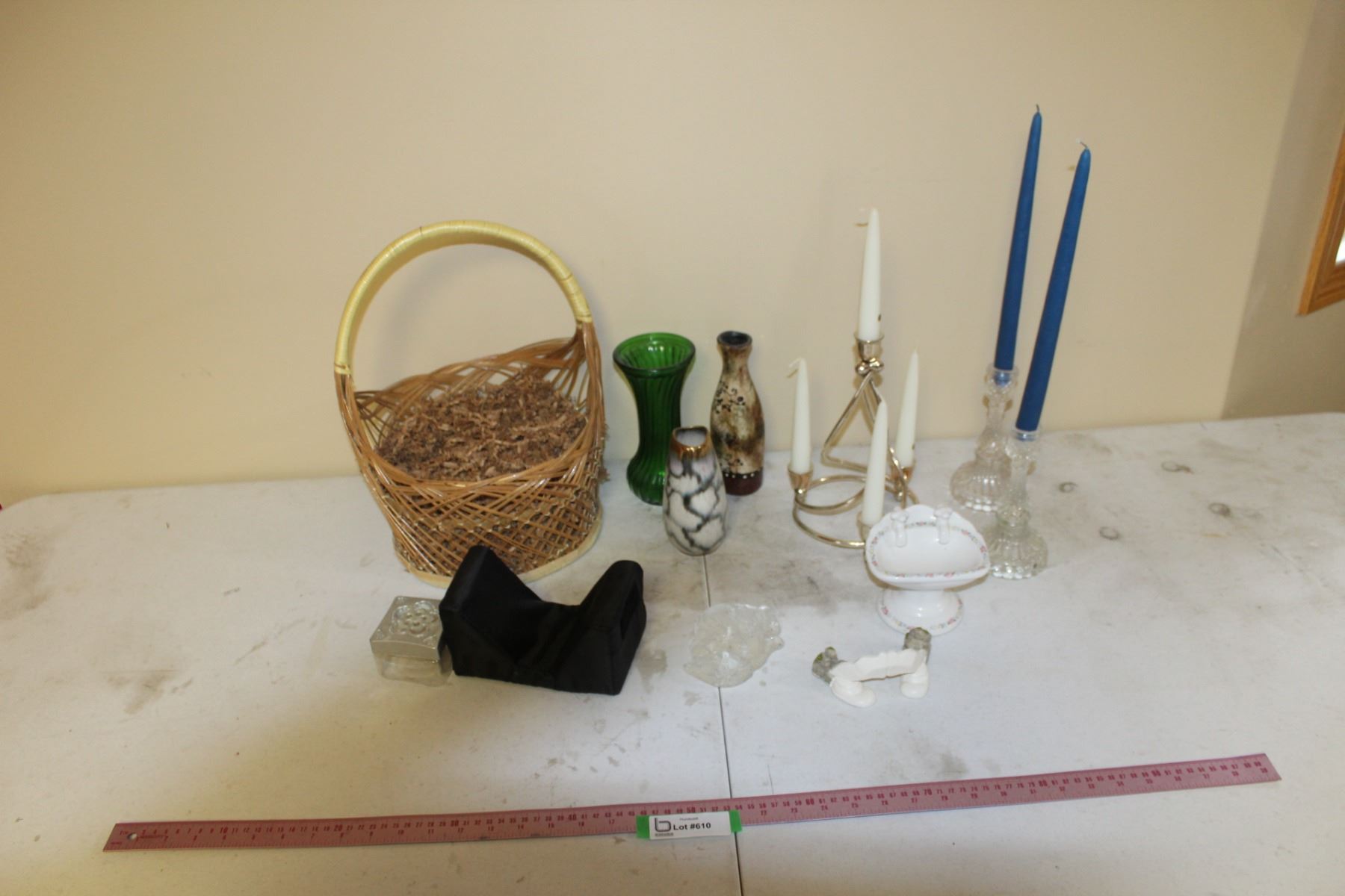 Basket, Vases, Candle Holders With Candles, Soap Dish, etc.