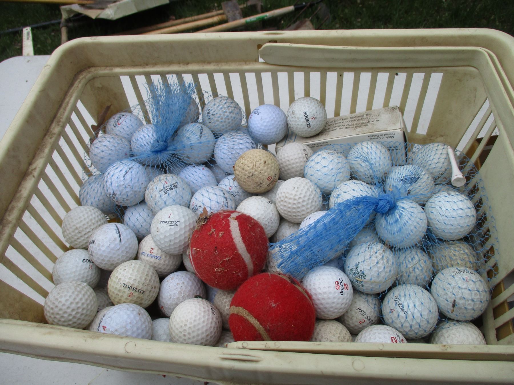 Basket of Used Golf Balls & (12) 3 pks of New Golf Balls of Varying Brands