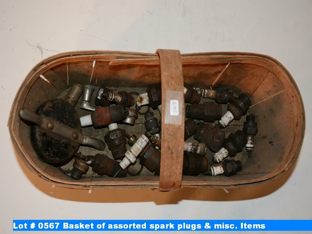 Basket of assorted spark plugs & misc. Items